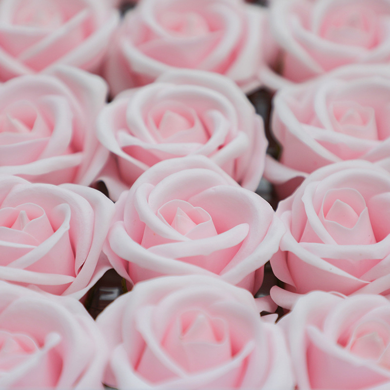 产品规格:50朵/盒,(内盒尺寸:48*25*7cm),一盒一个颜色,一盒内不混色,1000朵/箱,即20盒每箱,箱规97*47*37。手工测量单朵花头直径:4.5 高度7厘米左右。