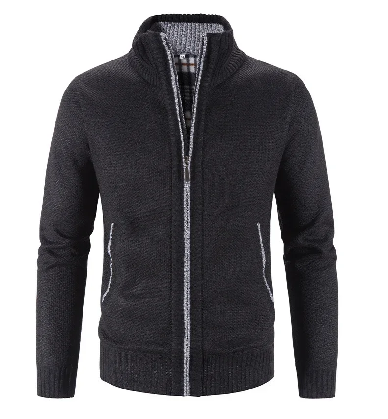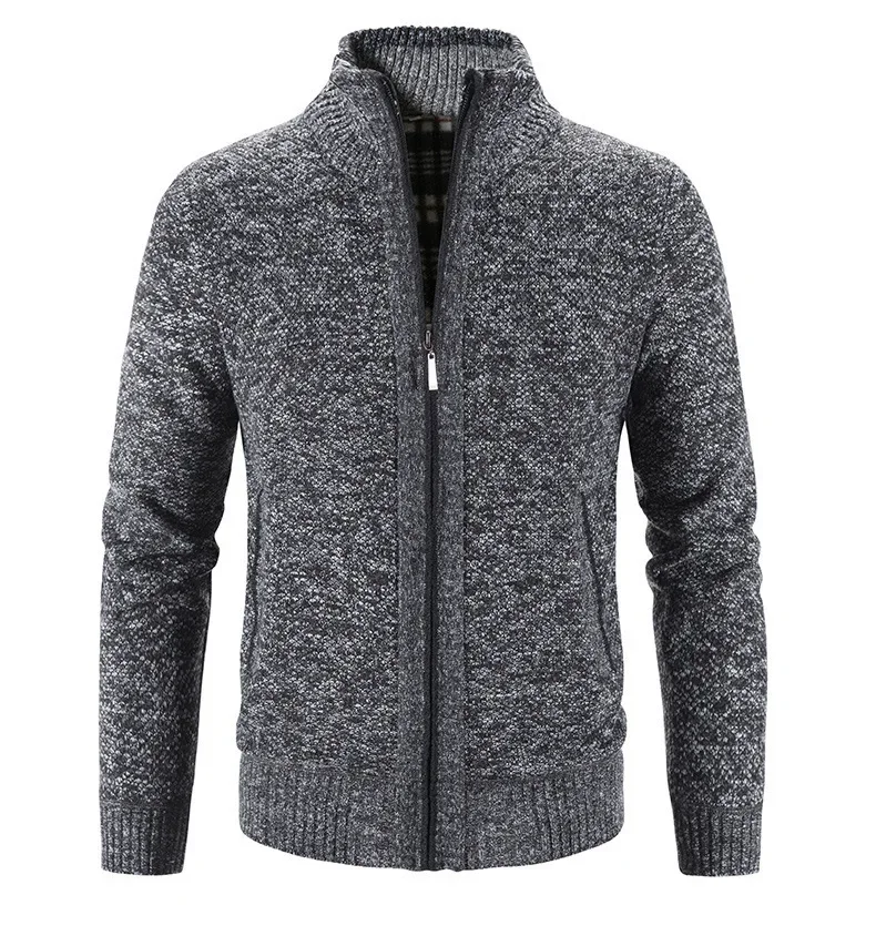 Свитер осень-зима, мужской, средней длины, с молнией, утолщенный, вязаный кардиган, флисовая подкладка, длинный рукав