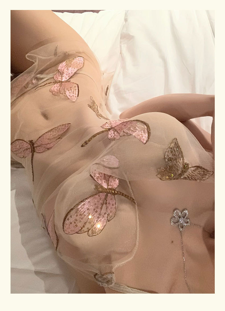 Сексуальные и интересные интимные вещи, прозрачное чистое желание, бретелька, пижама с вышивкой бабочки, короткая юбка, провокационный и страстный комплект ночной одежды