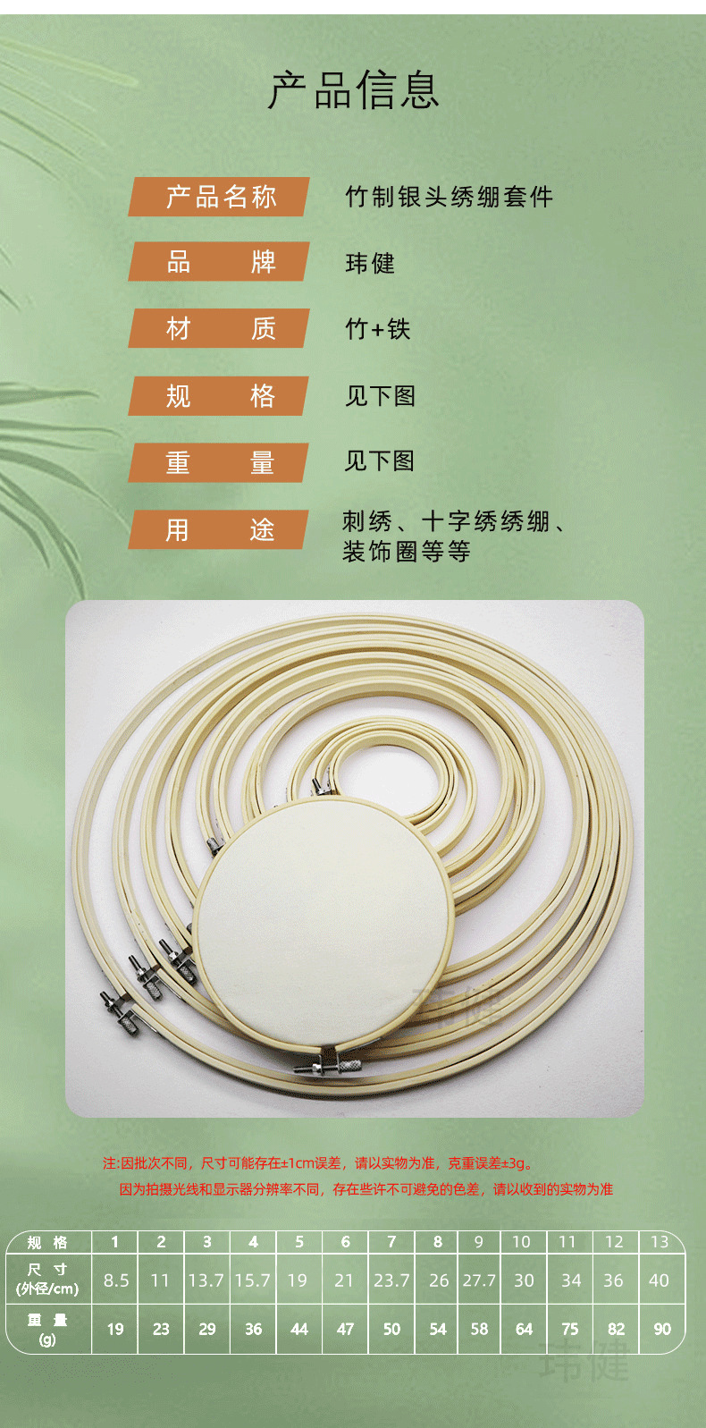 Новый обруч для вышивки крестом из бамбука, регулируемый, экологически чистые инструменты, оптовая поставка