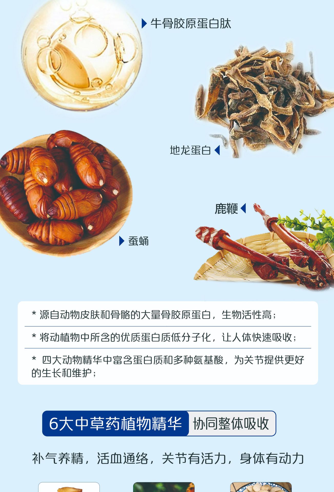 Основные сырьевые материалы Whole bone nutritional base powder, whole joint nutritional base powder, bovine collagen peptide, earthworm protein powder, polygonatum powder, etc