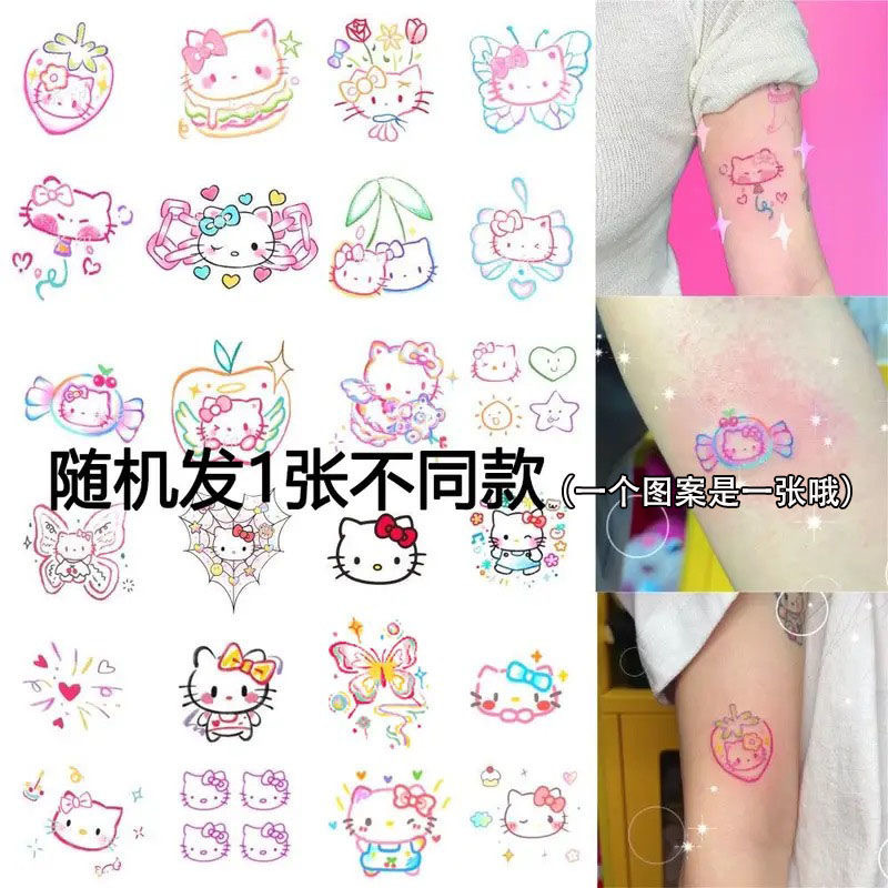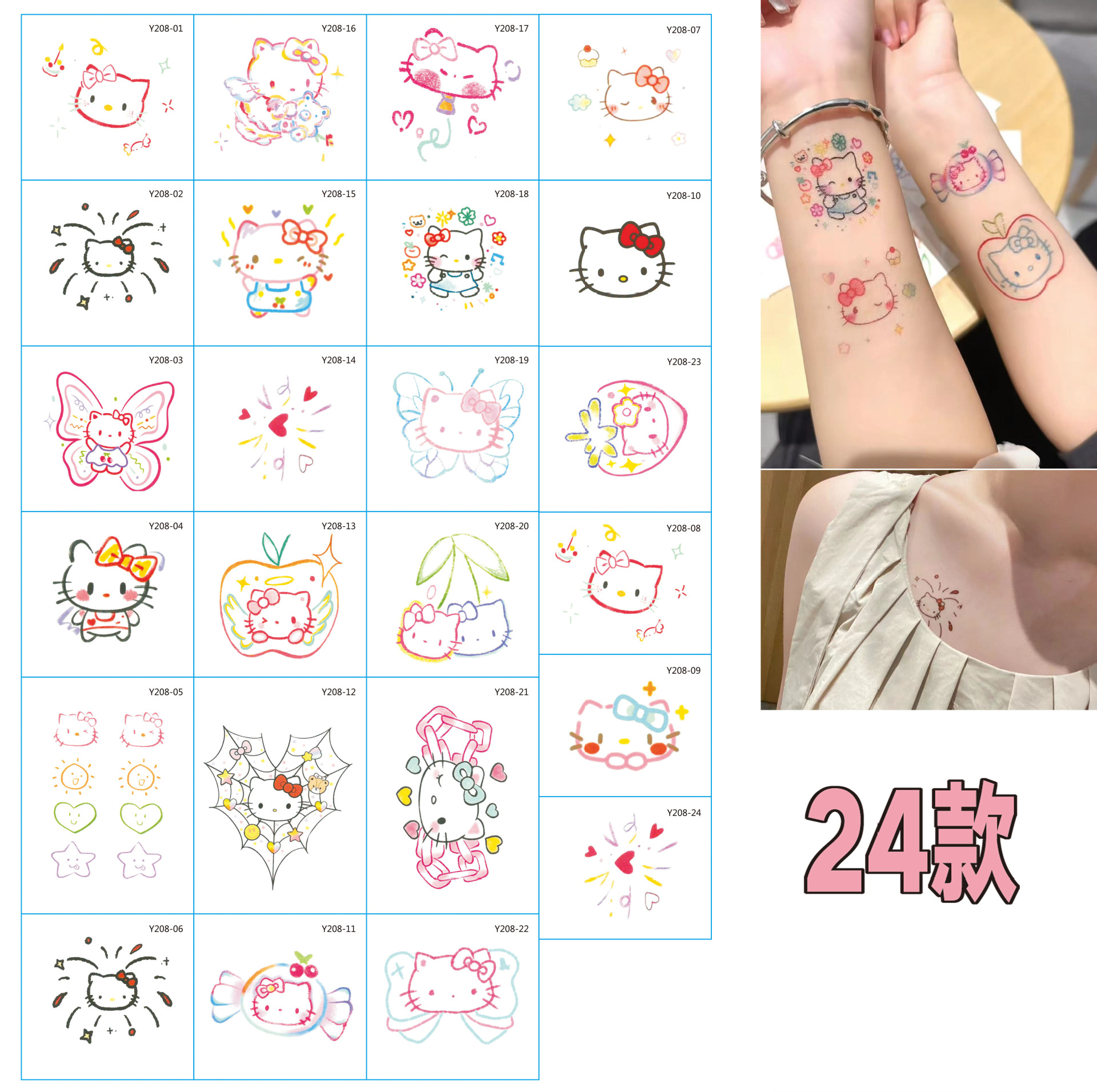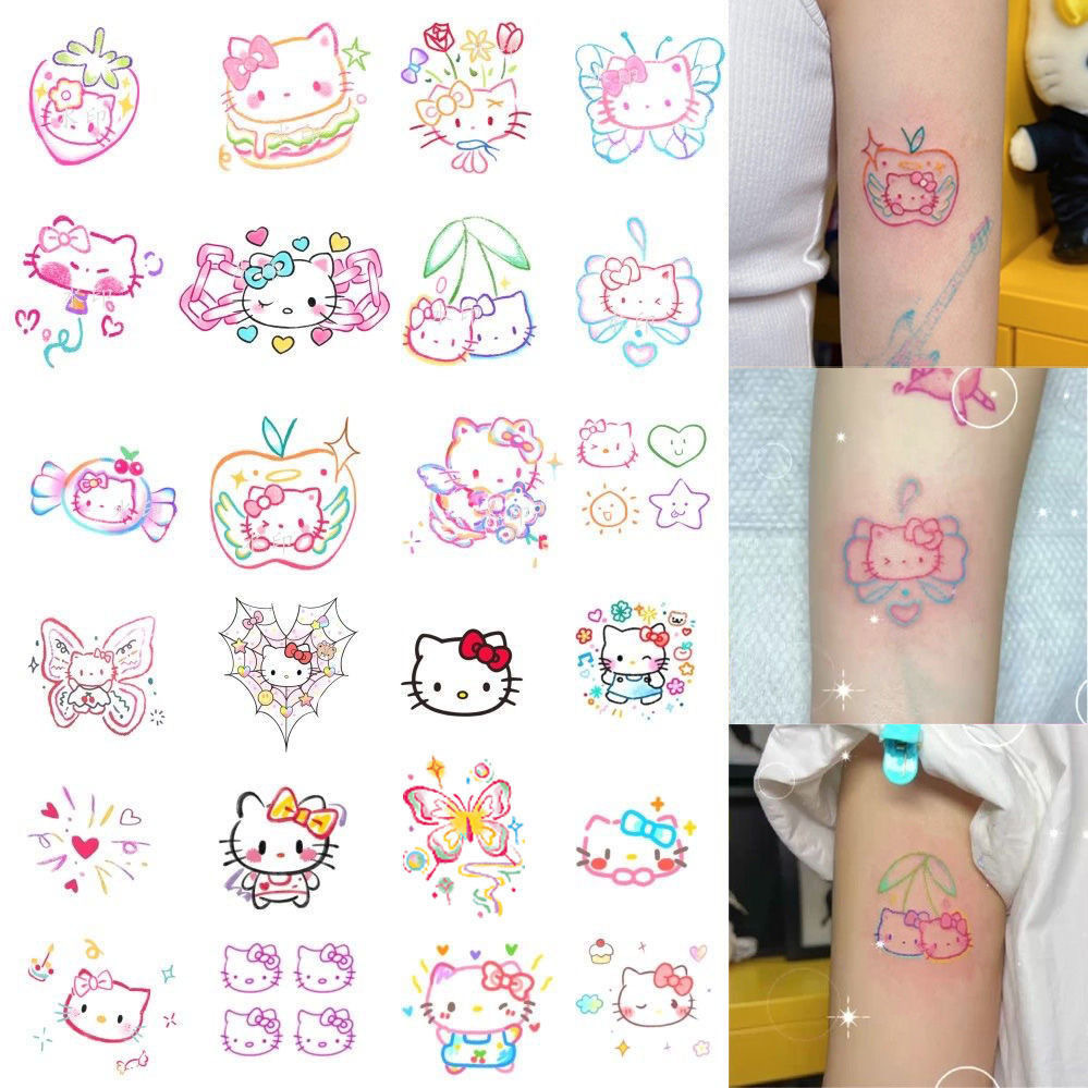 Наклейка татуировка кота Линия мультфильм милый популярный в интернете Хелло Китти цветная простая наклейка на палец запястье