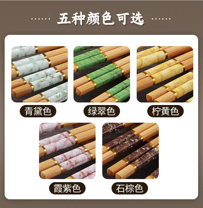 Палочки с мраморным принтом пяти цветов оптом, карбонизированные, без отверстий, термопередача, 10 пар печатных бамбуковых палочек