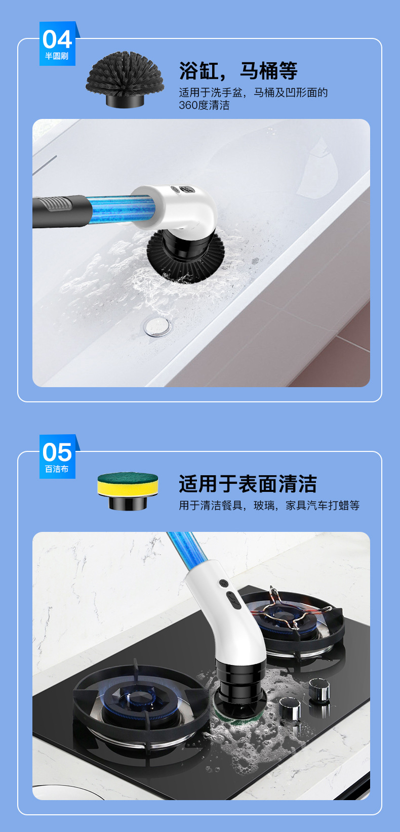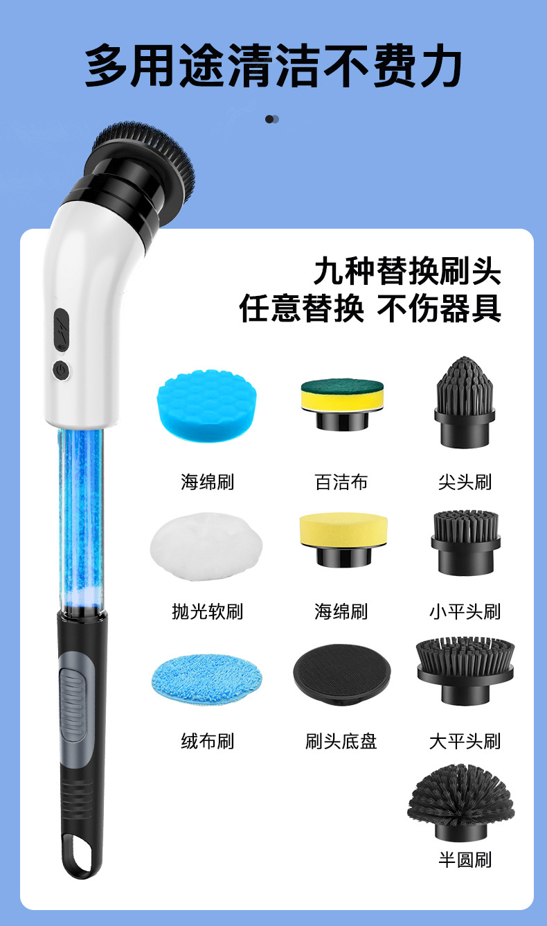 Многофункциональная электрическая чистящая щетка с зарядкой, автоматическим вращением, для жидкостей, для кухни и ванной, с двойным назначением для стекол