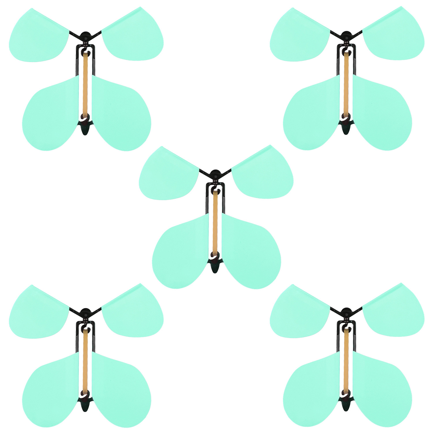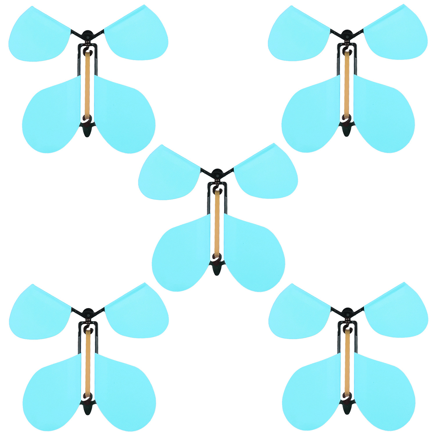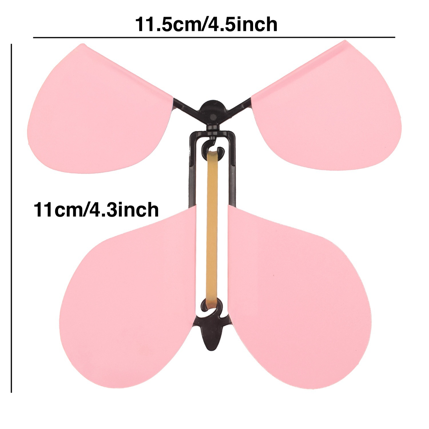 拿着蝴蝶的尾部不要动,右手转动蝴蝶的头部30 圈左右,然后同时松开双手,或者夹在书本里让朋友 打开书本,就可以看到蝴蝶飞出。本款产品类似发条 玩具,不是突出能飞多远,只是展示飞行的功能和动 态,不是真的会飞,是靠皮筋的扭力产生的一股向上 冲的力量,皮筋扭力释放后就会落下,本产品主要针 对外贸,请仔细考虑是否适合自己,飞行高度2米左 右,飞行时间2秒左右,介意勿拍。提示:翅膀是纸