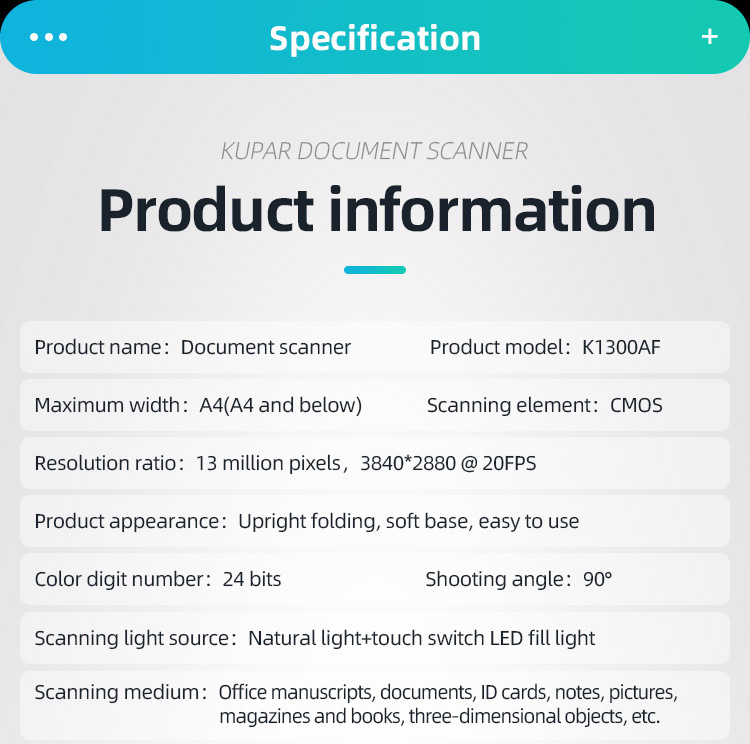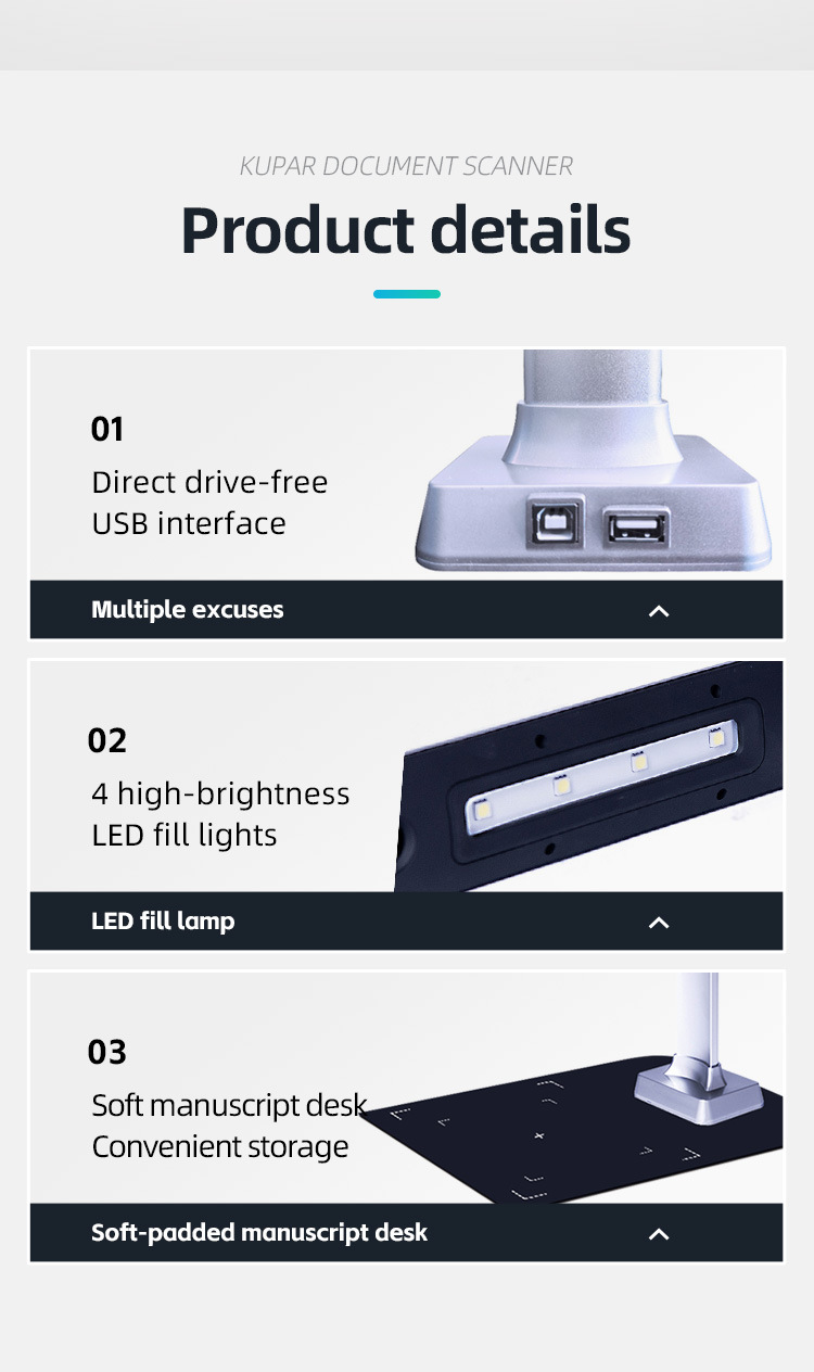 Камера Jiupai Kupar с высоким разрешением 8M 10M 13M для сканирования документов формата A4