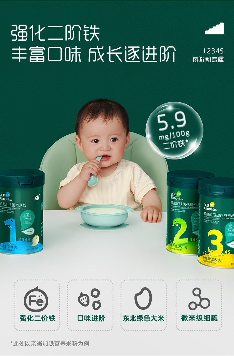 Рисовая мука Yingshi для малышей, рисовая паста, добавка к детскому питанию, рисовая мука с высоким содержанием железа, 258г