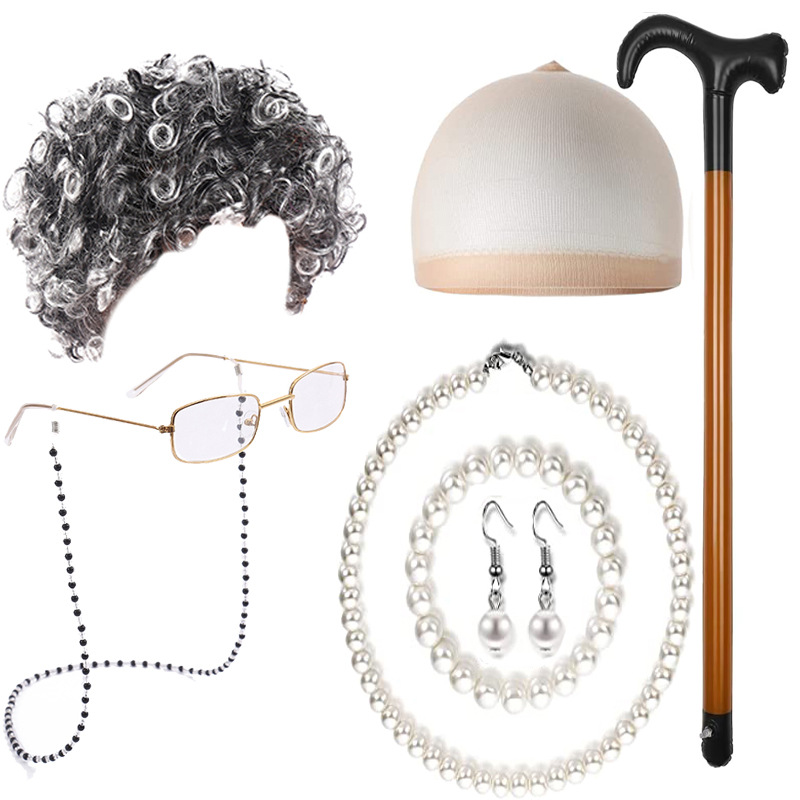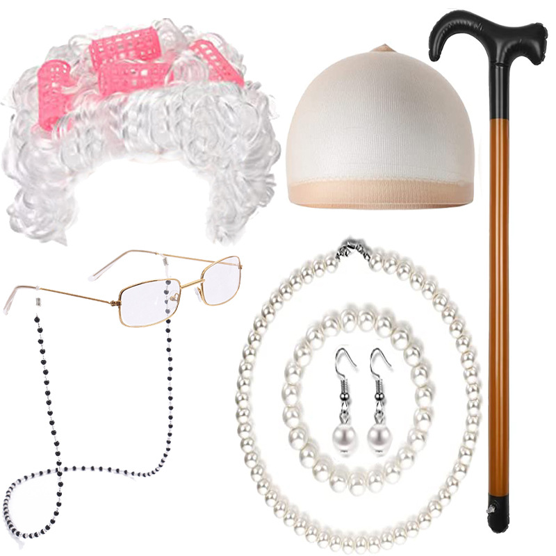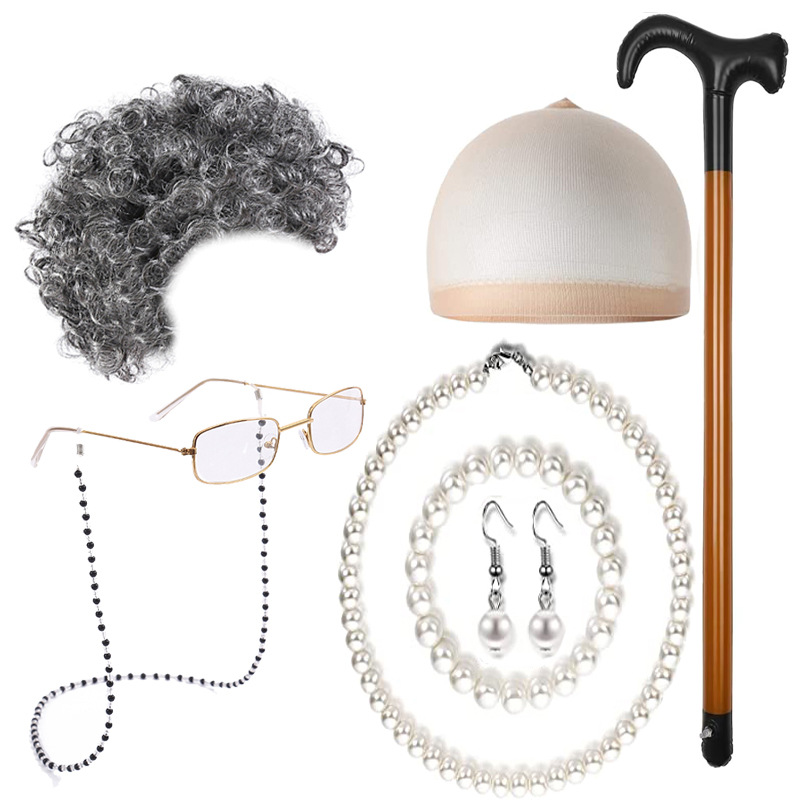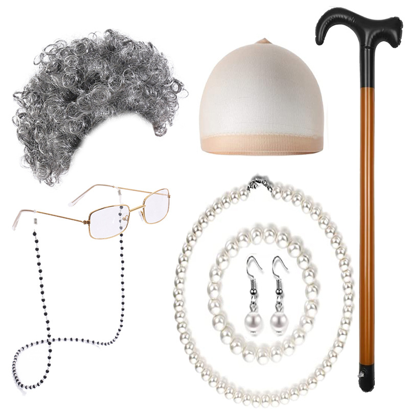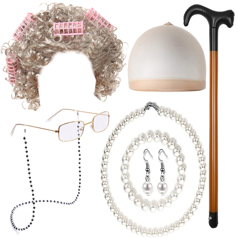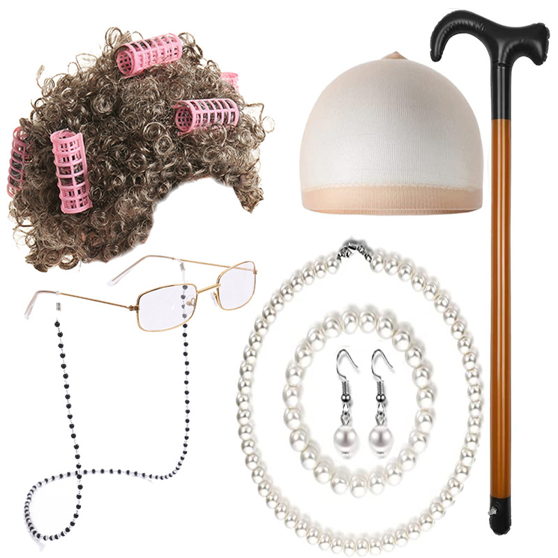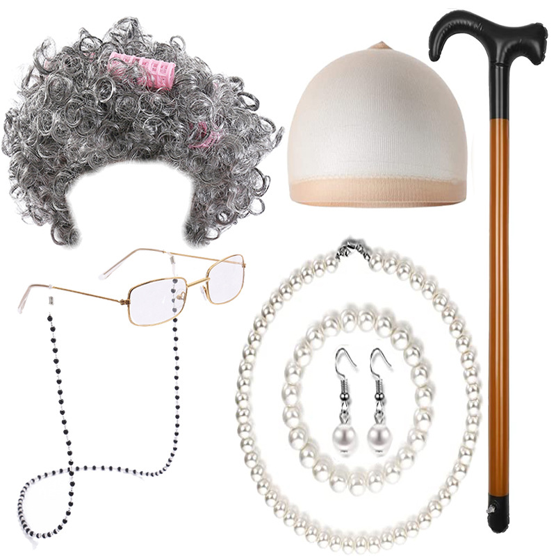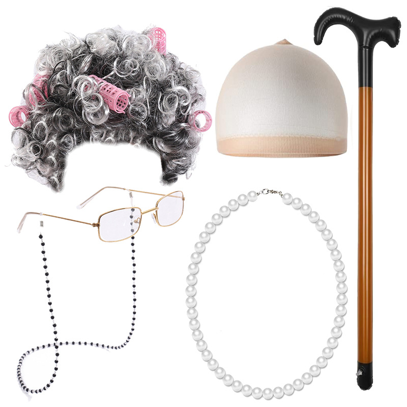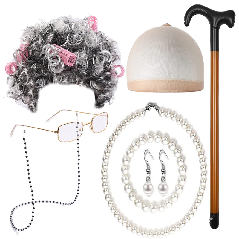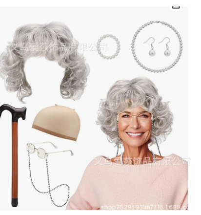 Серый парик для пожилой женщины, короткие кудрявые волосы, парик для Хэллоуина