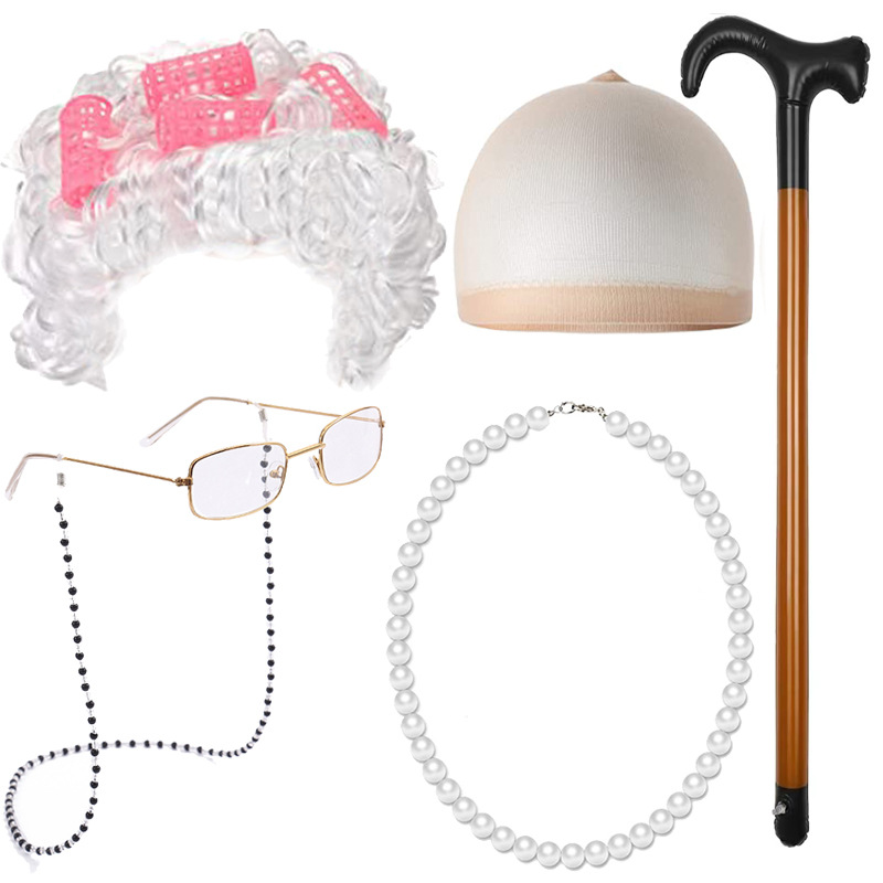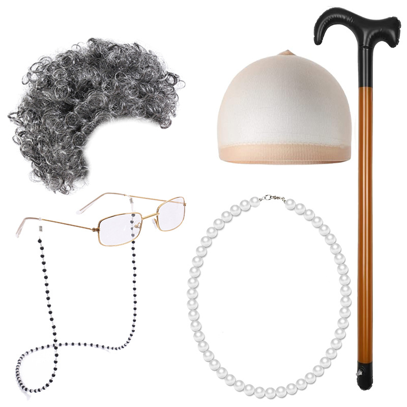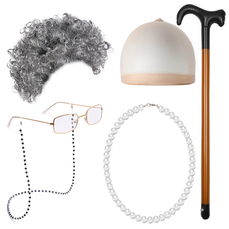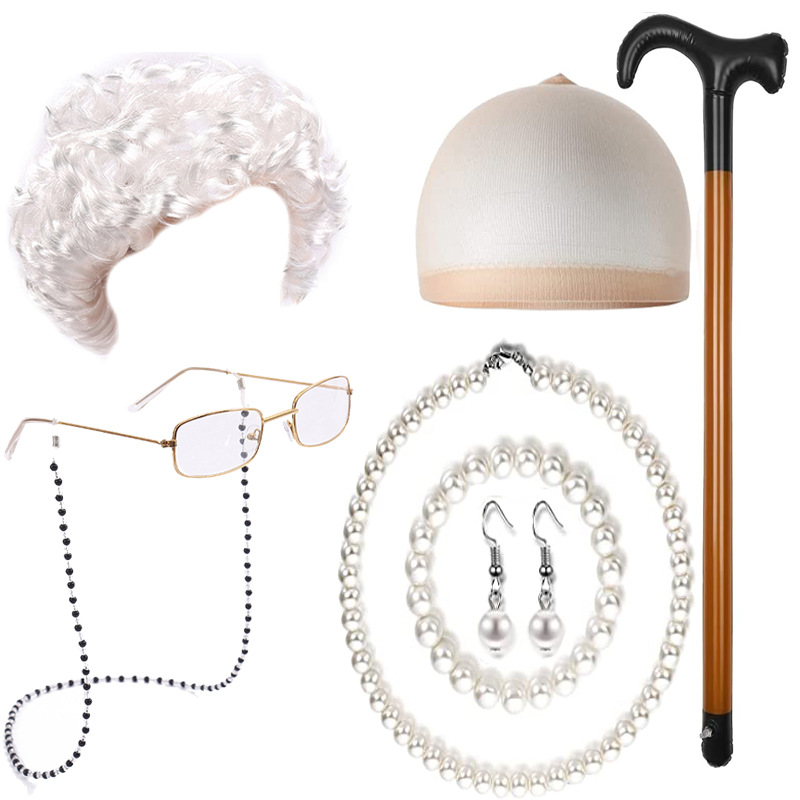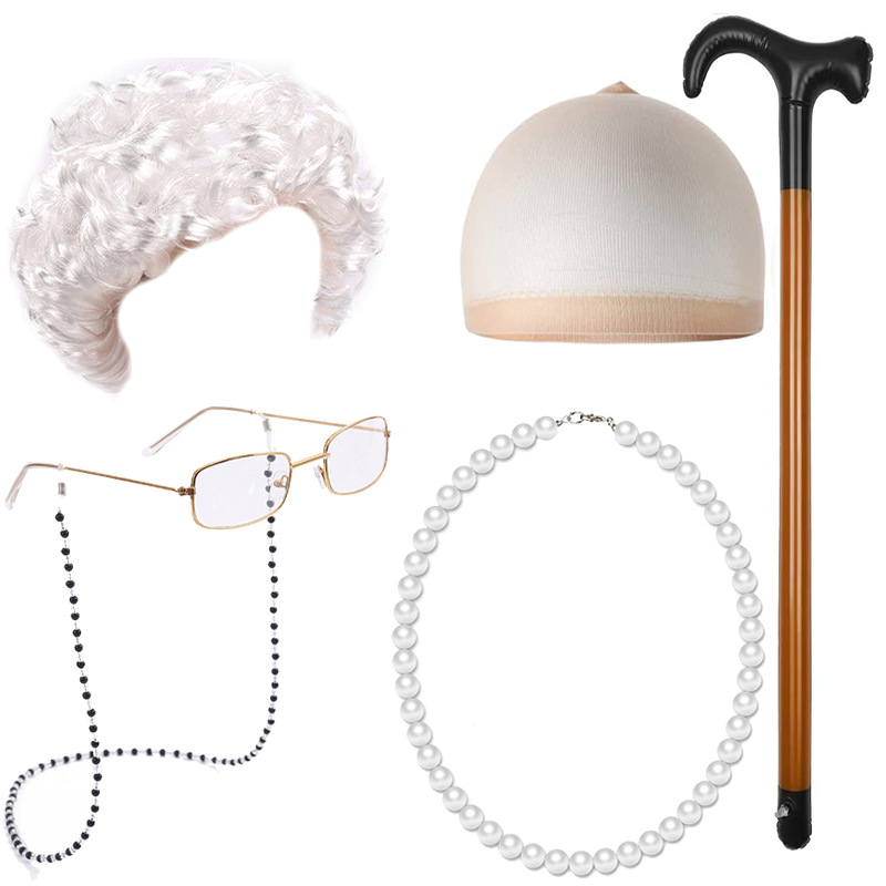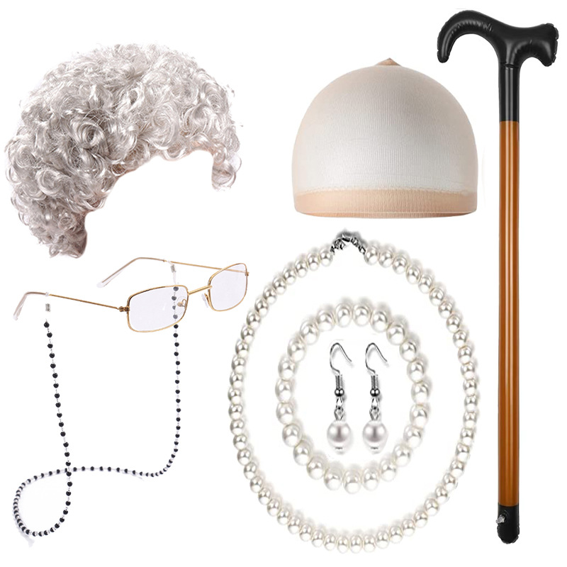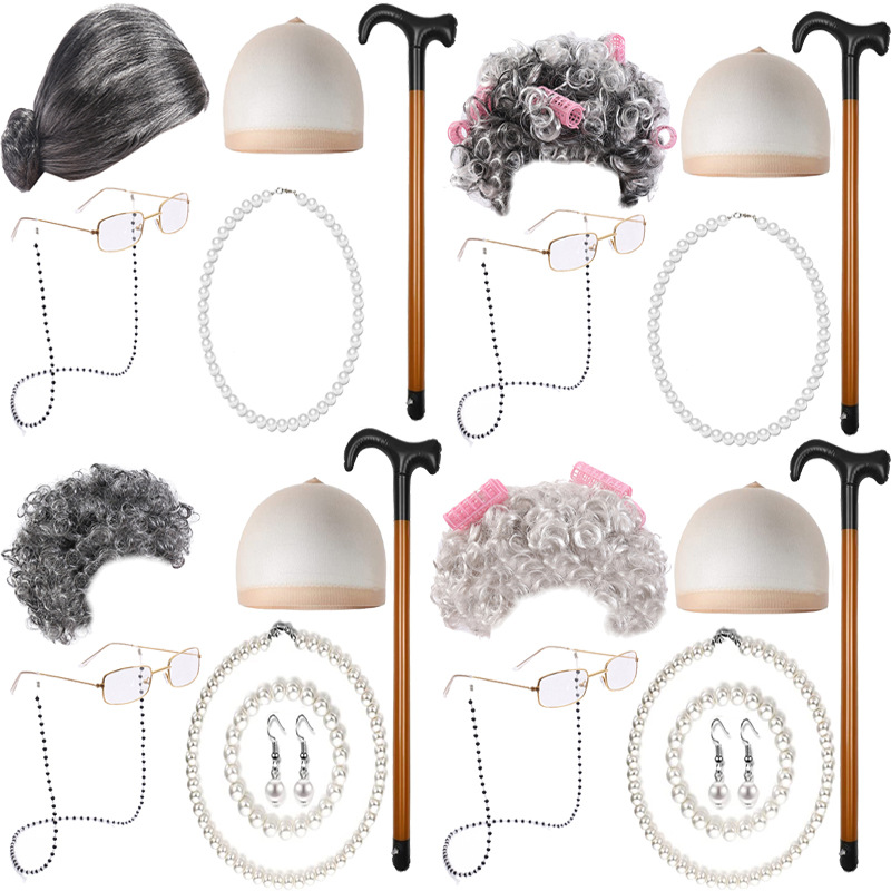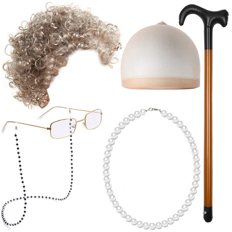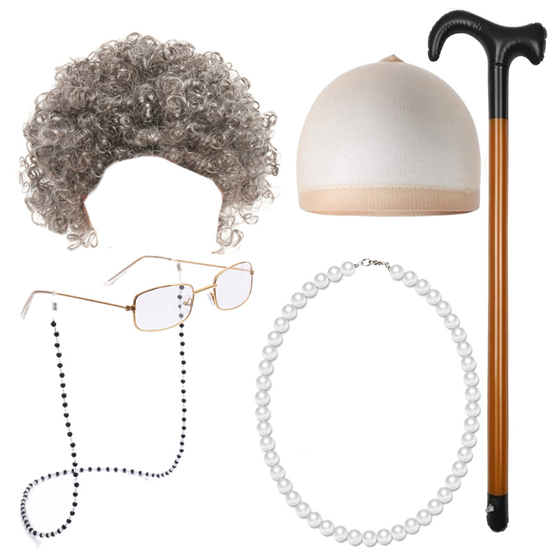Серый парик для пожилой женщины, короткие кудрявые волосы, парик для Хэллоуина
