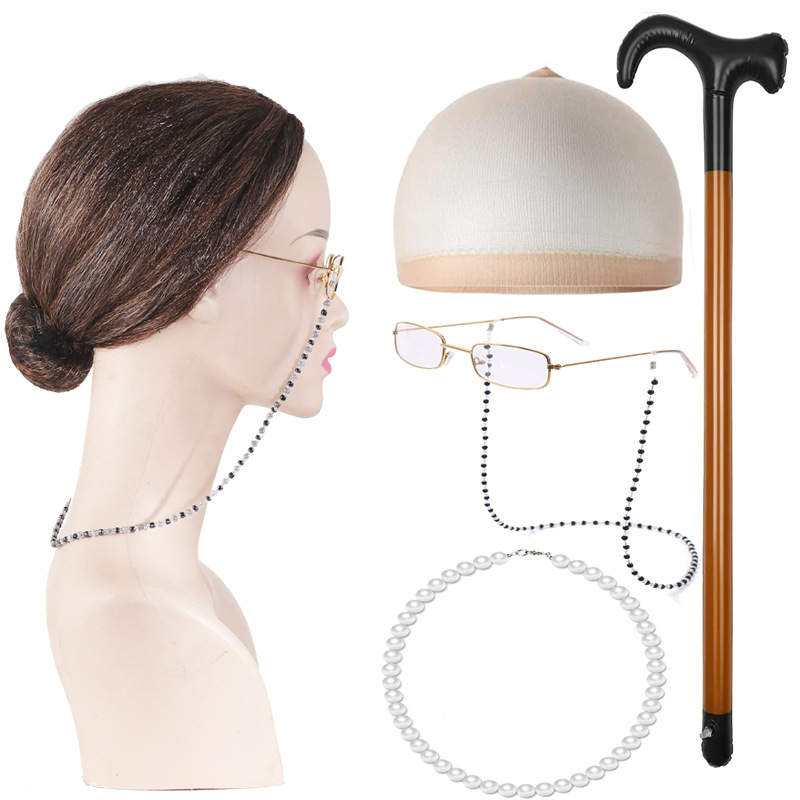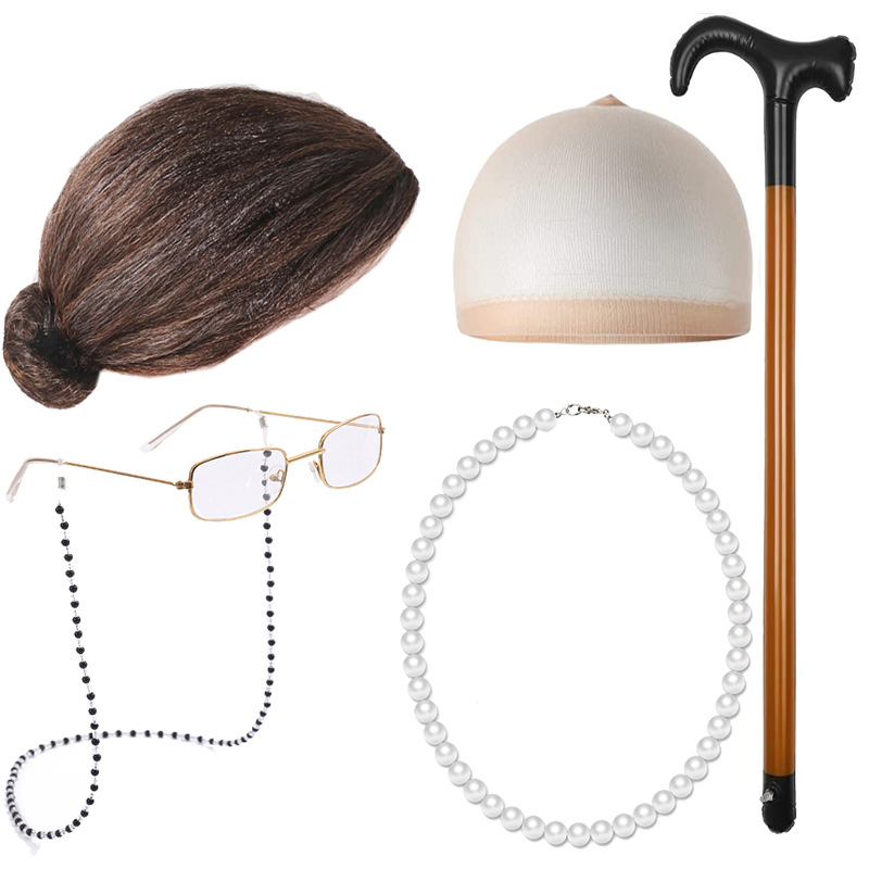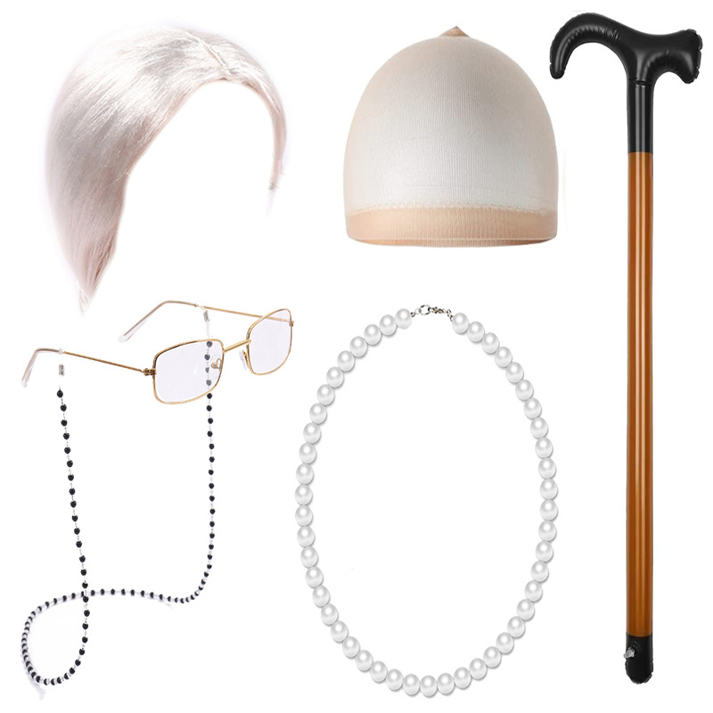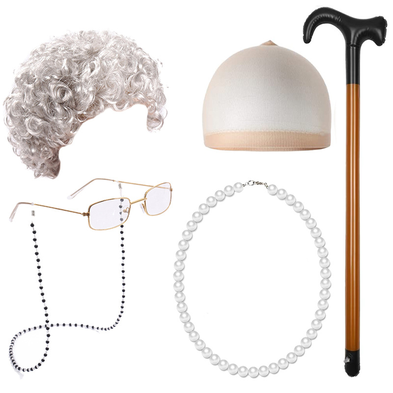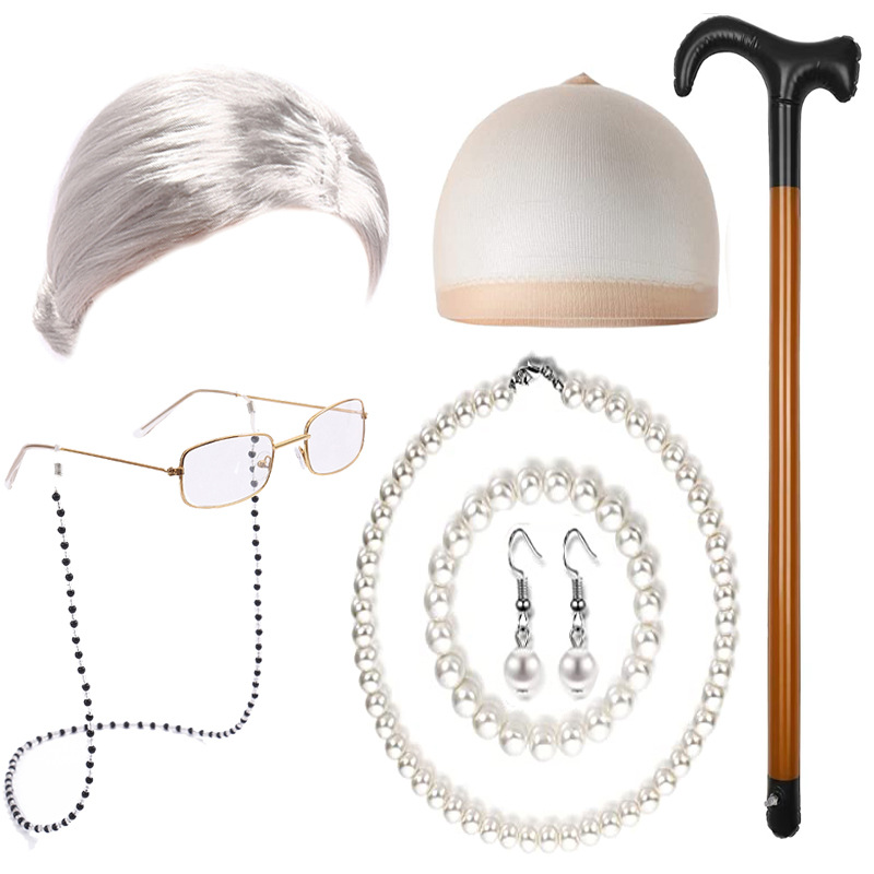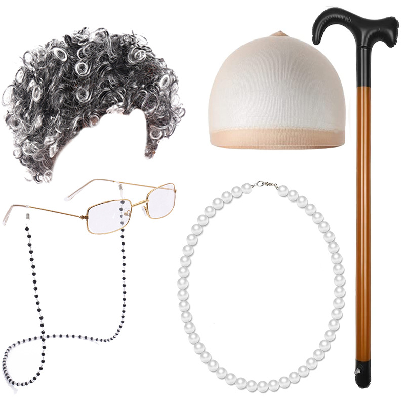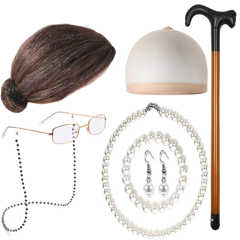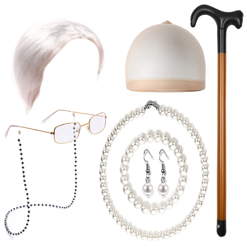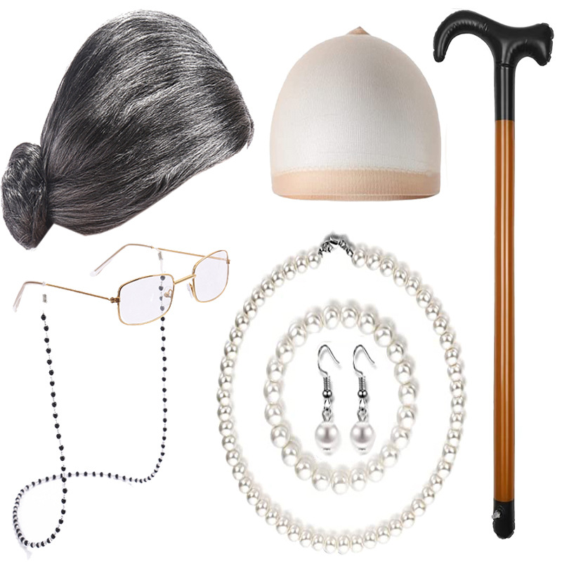 Серый парик для пожилой женщины, короткие кудрявые волосы, парик для Хэллоуина