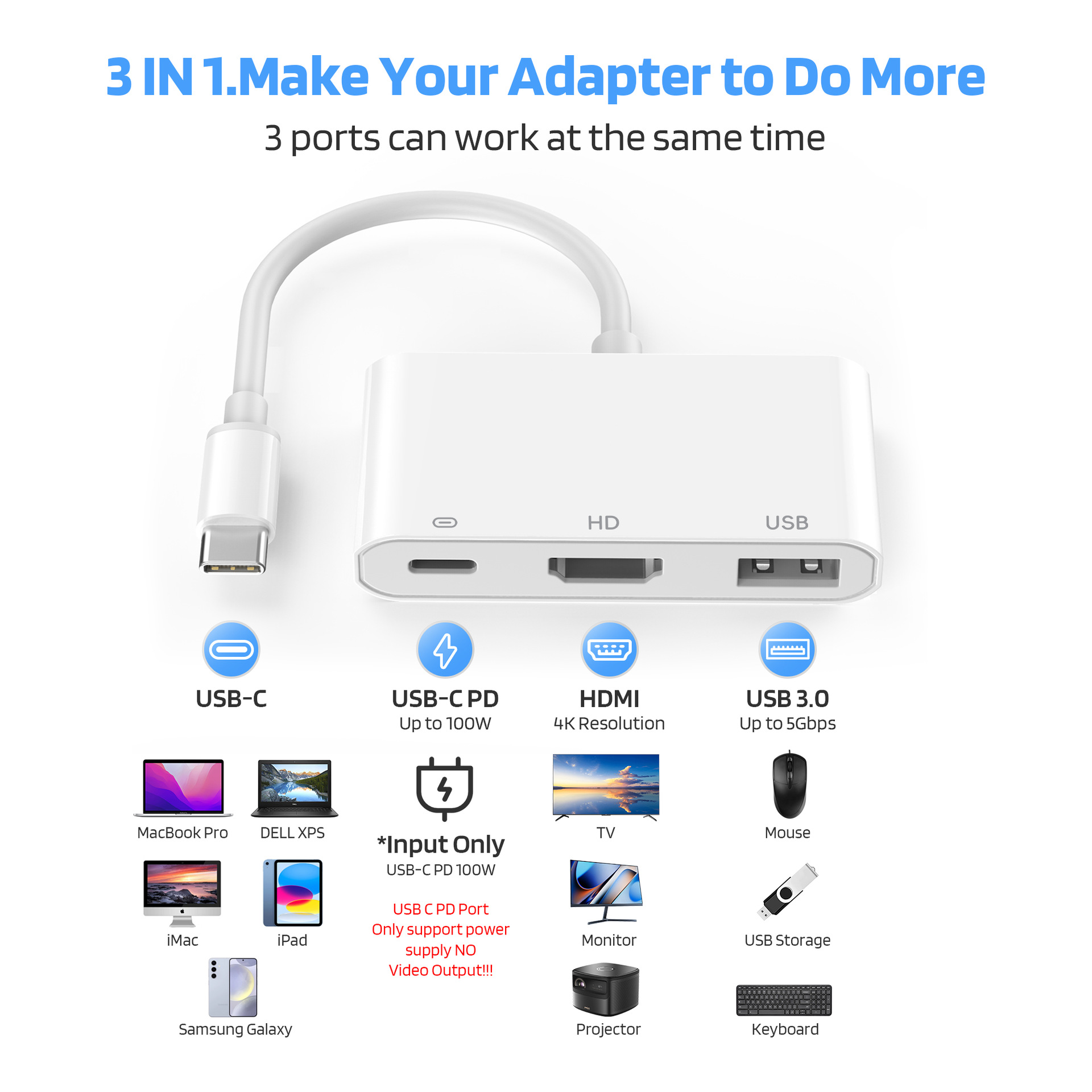 Адаптер HDMI для зеркалирования экрана с быстрым зарядом, встроенный чип, подключи и работай