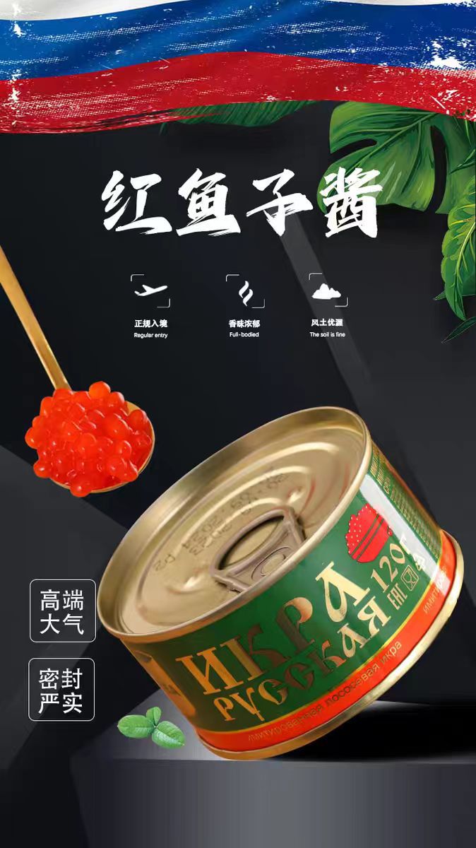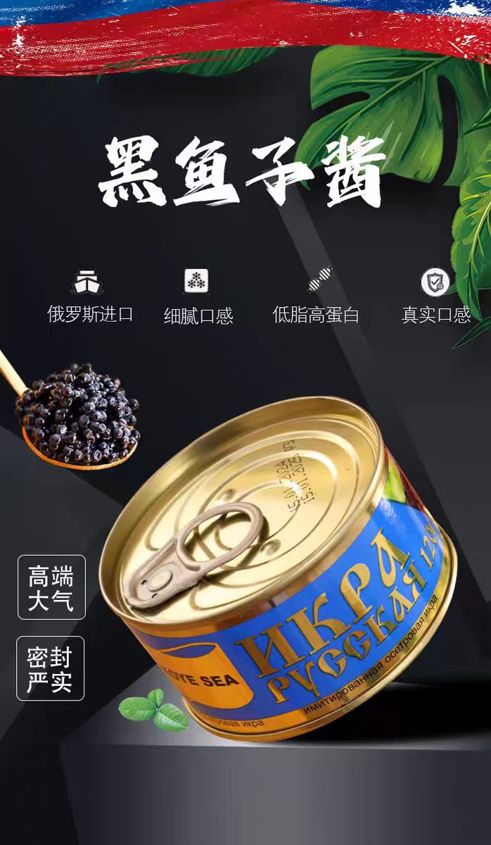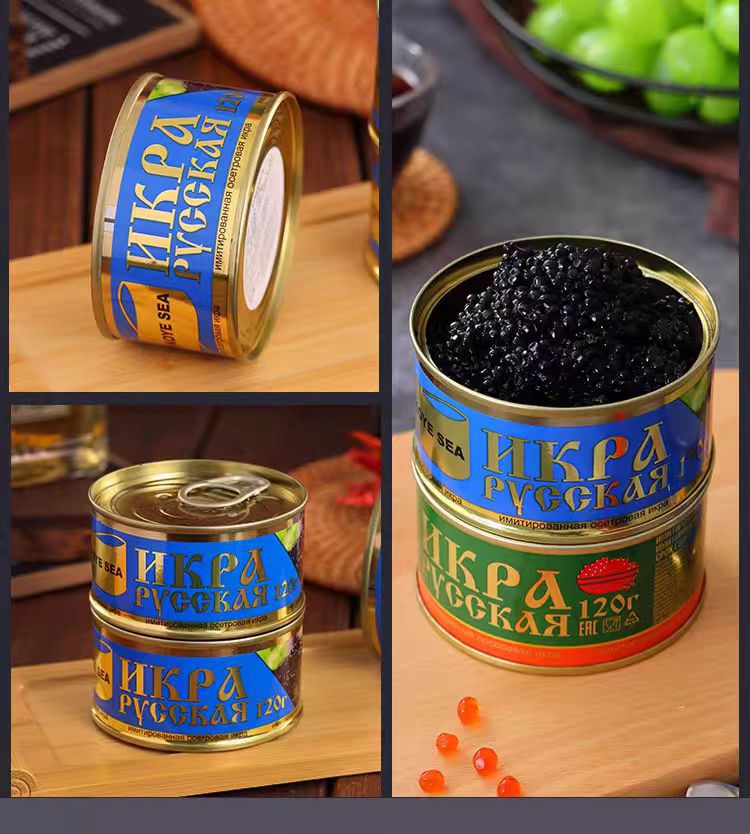 Импортированная из России синтетическая черная икра, осетровая, лососевая, красная икра, 120г/банка
