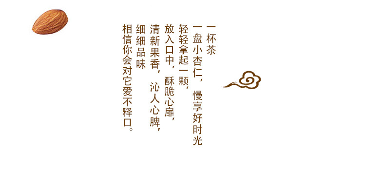 ![]() | Ripe almond 250g*1 bag | ¥19.9 / ≈ 240 ₽ | 292 | 5689489963237 | |