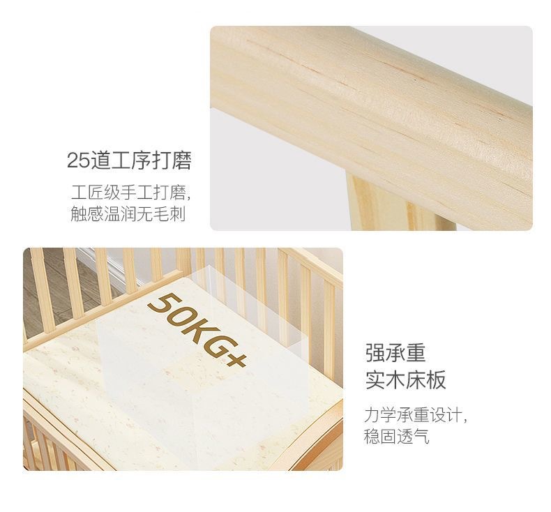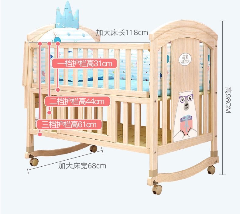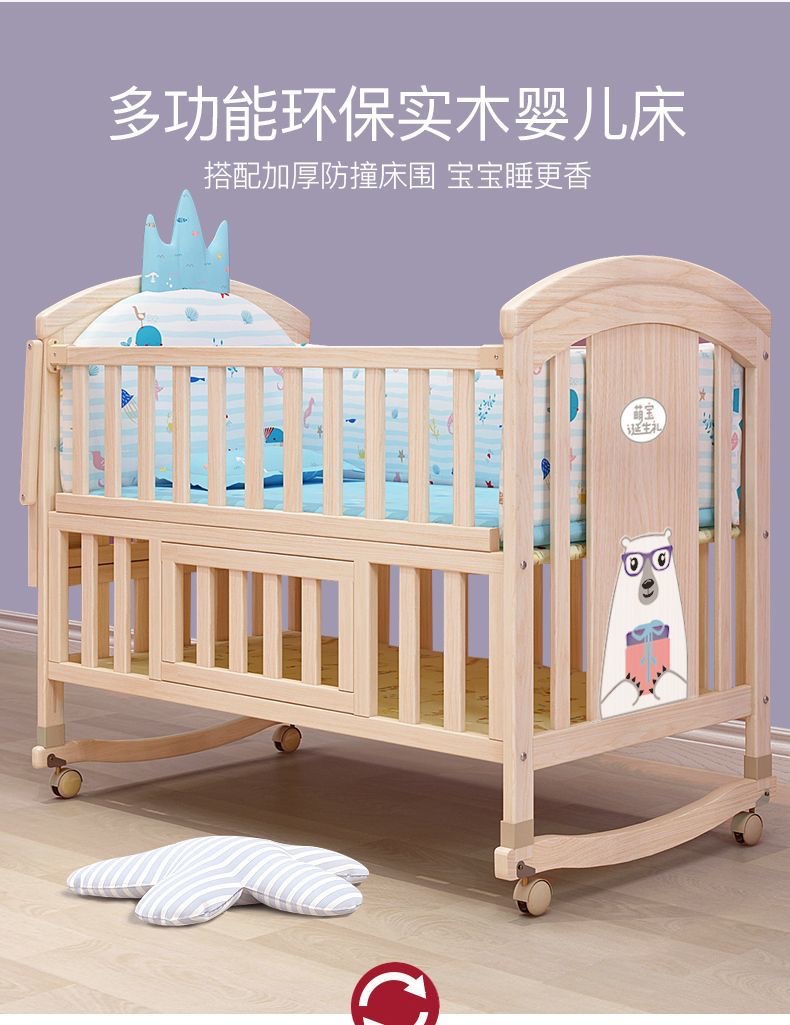 Детская кровать из массива дерева, многофункциональная, без краски, с качалкой, переносная, для новорожденных, раскладная