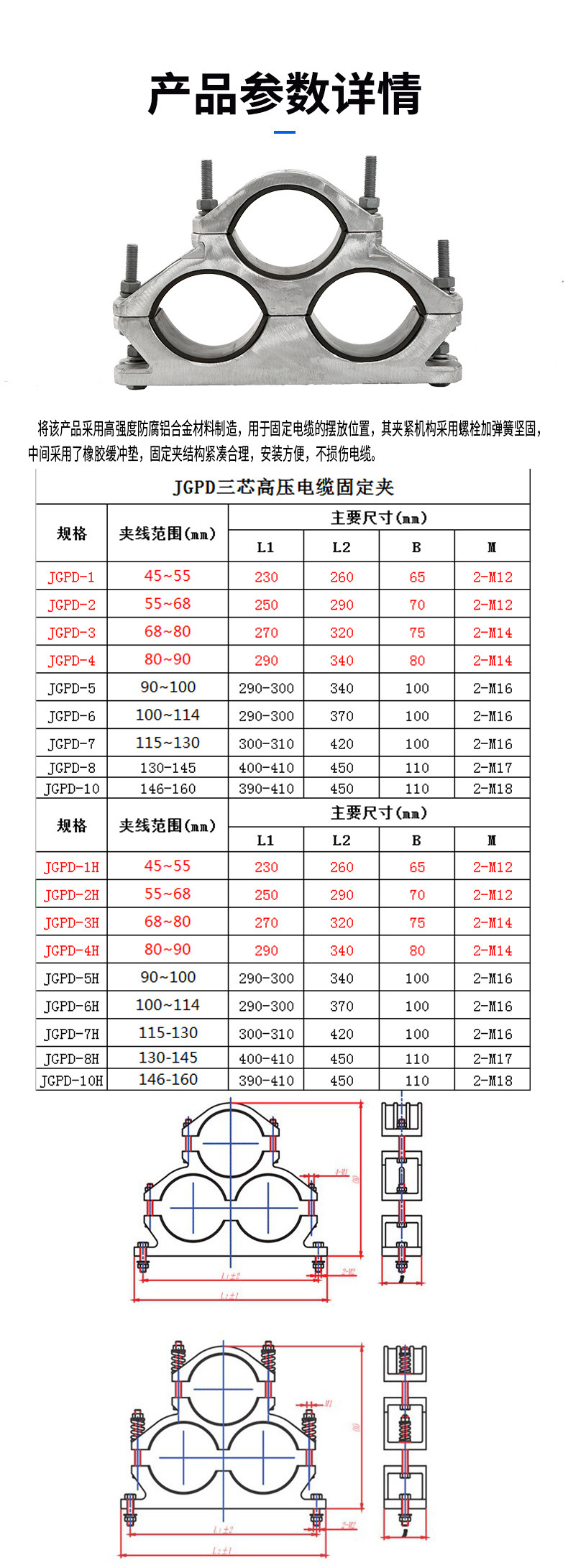 Зажим для высоковольтного кабеля JGPD-5 трехжильный жесткий болтовой крепеж продукт типа трехжильный алюминиевый сплав немагнитный зажим