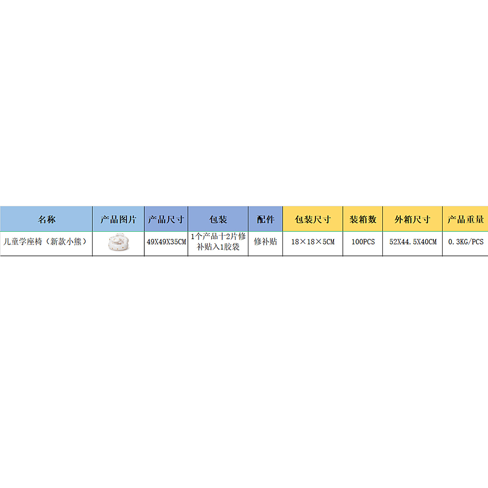 ![]() | Children's learning seat (new bear) | 1шт: ¥45.00, 2шт: ¥33.00 | 4570 | 5764196615745 |