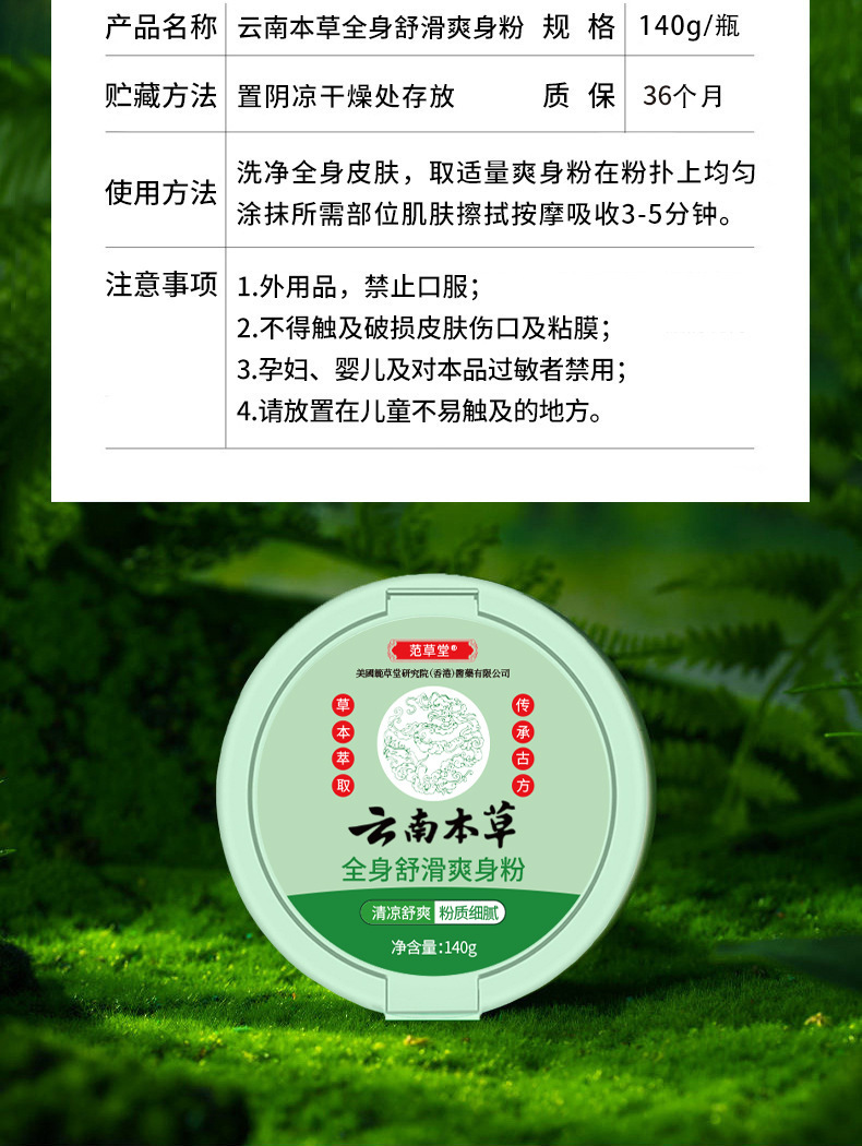 ![]() | Fanchaotang whole body soothing talcum powder 140g | Yunnan materia medica talcum powder | 1шт: ¥4.00, 750шт: ¥3.50, 7500шт: ¥3.10 | 34040 | 6081177262446 | |