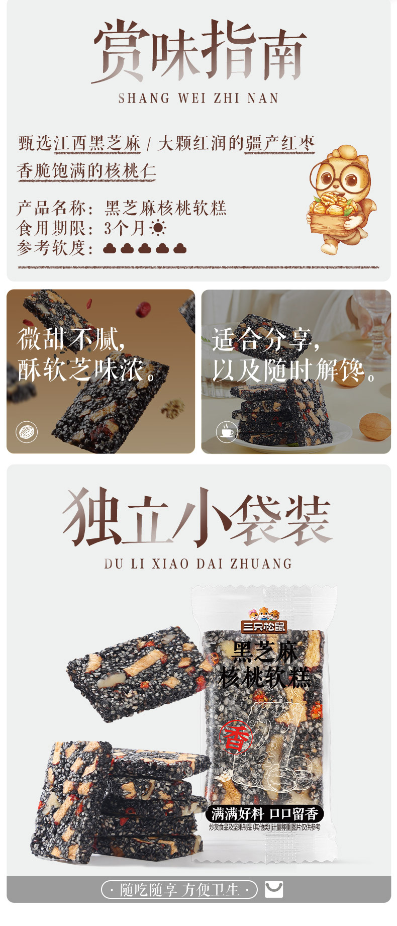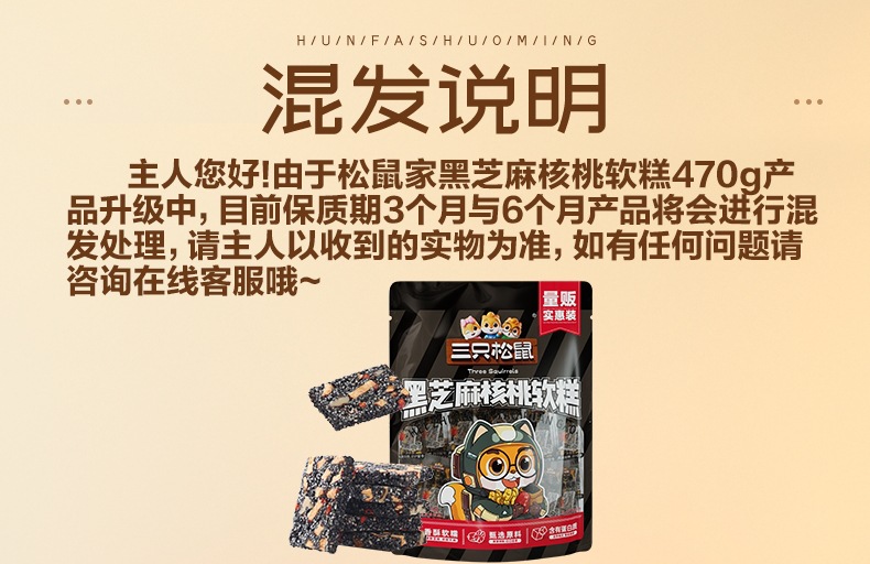 Торт из черного кунжута и грецких орехов Three Squirrels 470г, около 50 упаковок выпечки, нарезной торт, полезные закуски