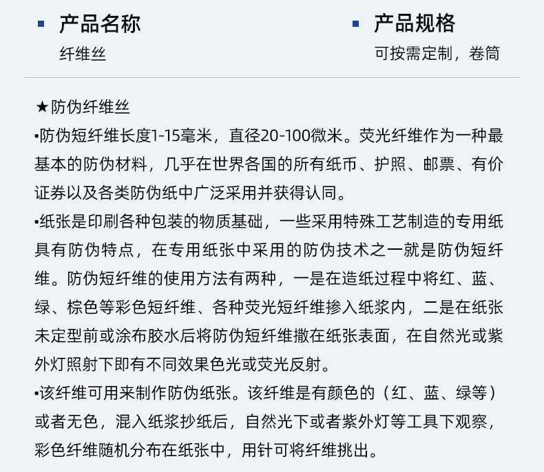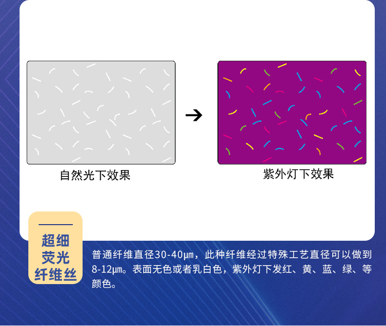 Антифальсификационное волокно для бумаги, усиленное бесцветное флуоресцентное волокно, флуоресцентный сегментированный волокнистый лист, который можно сделать в виде изображений