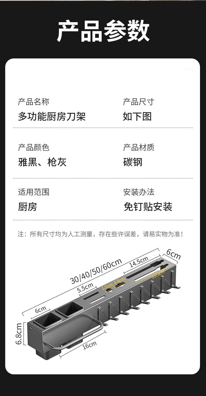Держатель для ножей из углеродной стали, настенный, многофункциональный