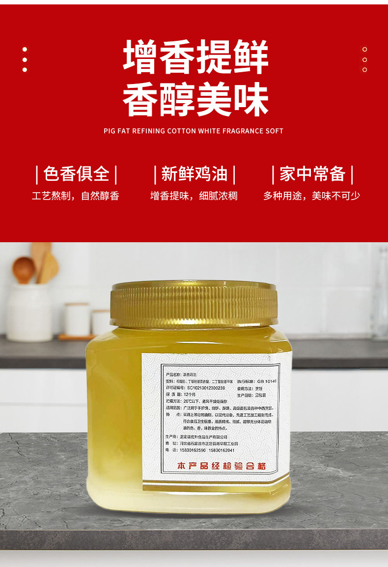 Куриный жир для готовки, домашнего использования, рисовой лапши, острого супа, жарки, барбекю, приправы для хот-пота, куриный жир 500г, насыщенный аромат, в упаковке бочонком