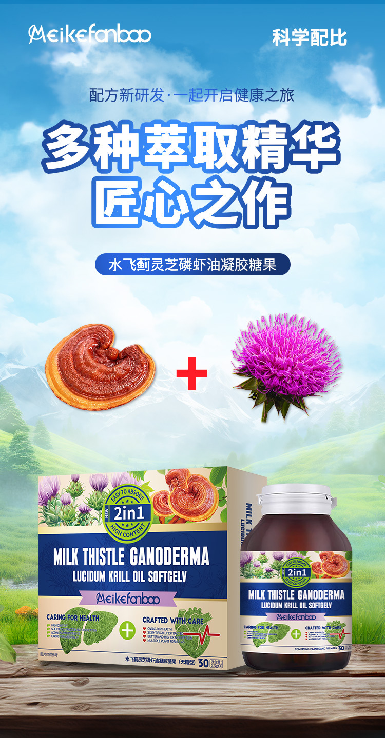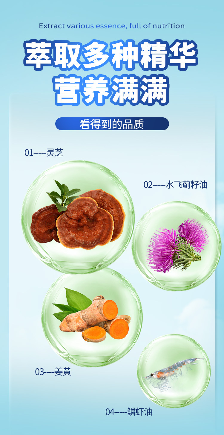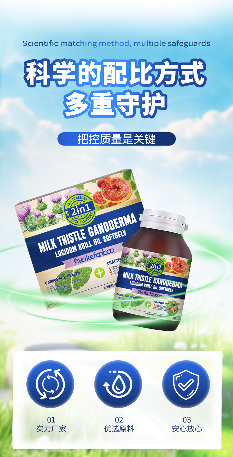 Иностранная торговля Кросс-граничные производители Имеется в наличии Оральная безсахарная питьевая вода Защита печени Содержит расторопшу, гриб рейши и крилевое масло Жевательные конфеты