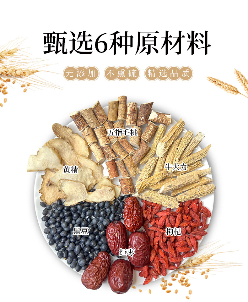Основные сырьевые материалы Dong quai, polygonatum, black beans, wolfberry, red dates, five-fingered peach