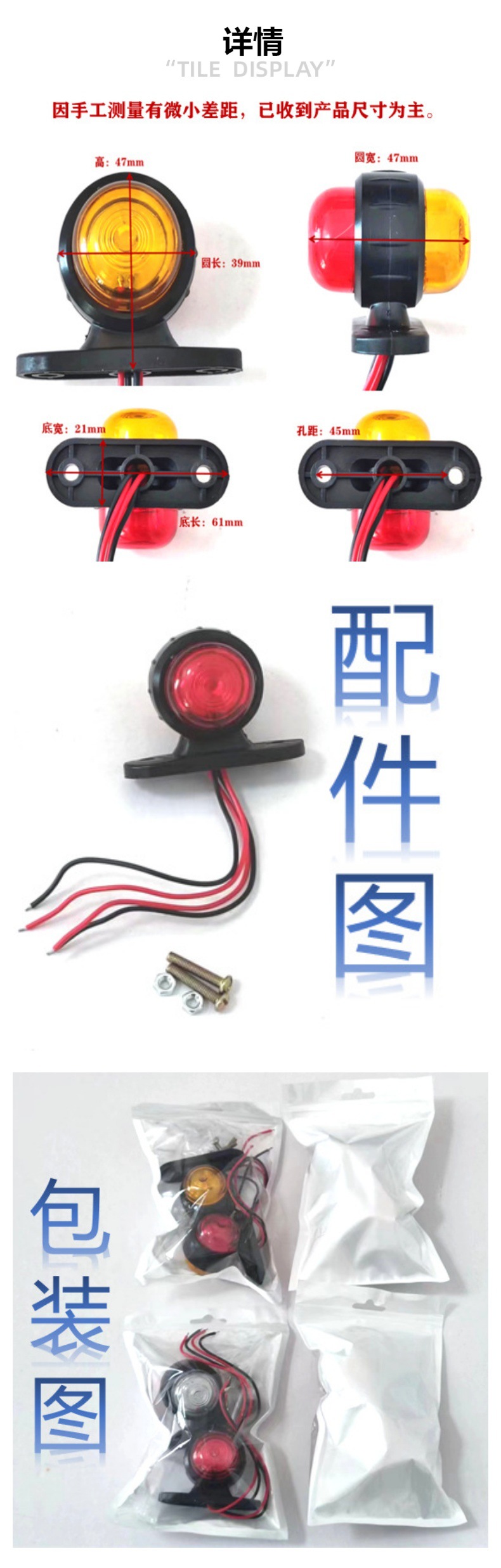 24V малые двойные боковые светодиоды для прицепа, задний фонарь, боковой свет, двойной круглый фонарь