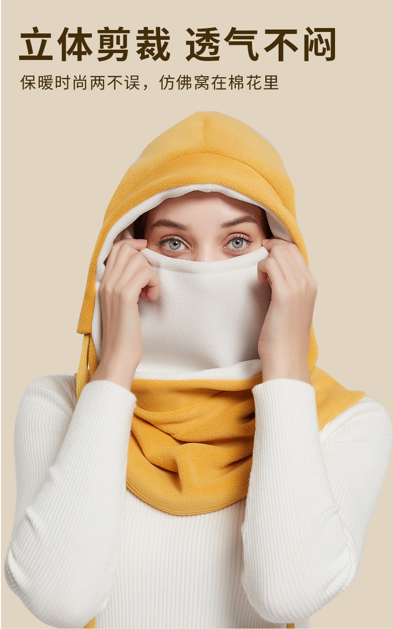 Шарф-шапка осень-зима однотонная для активного отдыха ветрозащитная холодостойкая теплая флисовая шапка с защитой ушей