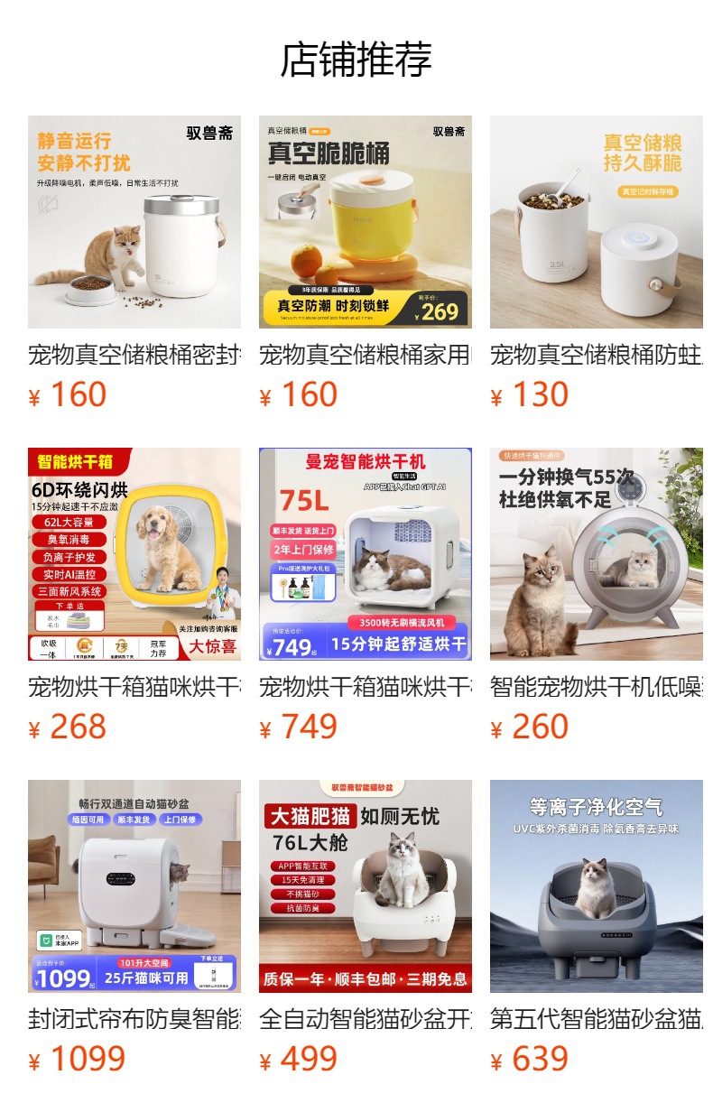 ![]() | Main white with gray | 1200w 62 liter bottom air outlet + deodorization (negative ion hair protection) + ultraviolet disinfection + cat nest | 1шт: ¥439.00, 10шт: ¥429.00, 1000шт: ¥350.00 | 99997747 | 5763899119433 | |