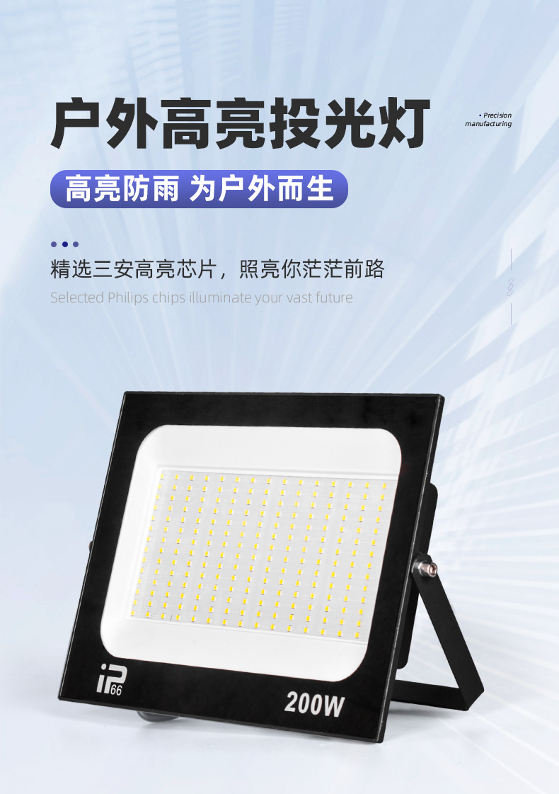 Светодиодный проектор, уличный водонепроницаемый, строительный участок, 200W, поисковый фонарь, мощное освещение