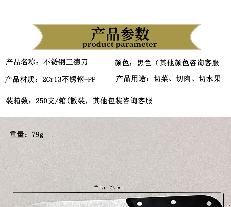 Нож для нарезки овощей японского шеф-повара из нержавеющей стали, черная пластиковая ручка, экспорт из фабрики Янцзян Юаньхуа