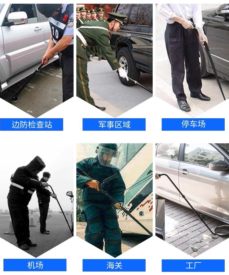 主要用于人员检查时,对于不可直接观察、甚至难以看到的部位的有力工具。其独特的折叠杆设计,可以完全折叠后放入口袋内,便于携带;操作简便,展开后可自如拉伸使用。