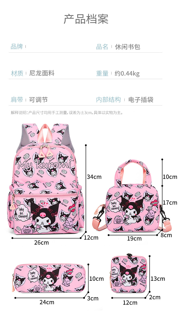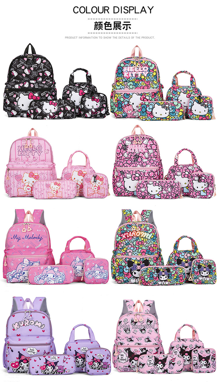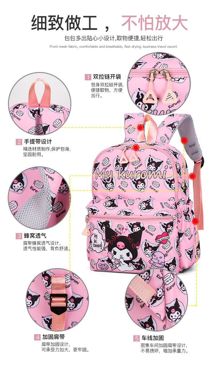 Новый школьный рюкзак для женщин, четырехкомпонентный рюкзак Kuromi, большой объем, для учащихся начальной школы, 3-6 классы