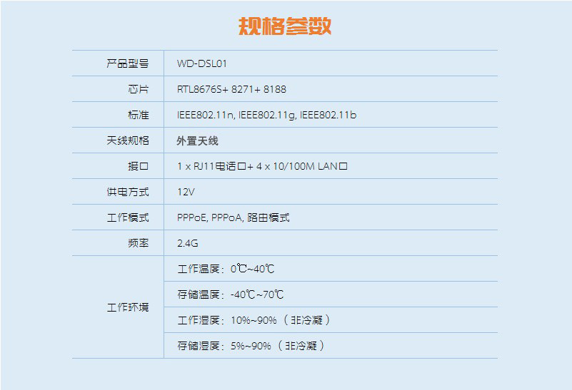Список упаковки ADSL, manual, telephone line, separator, power supply, network cable