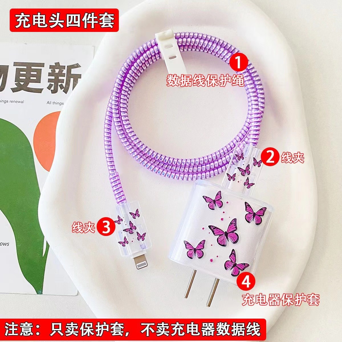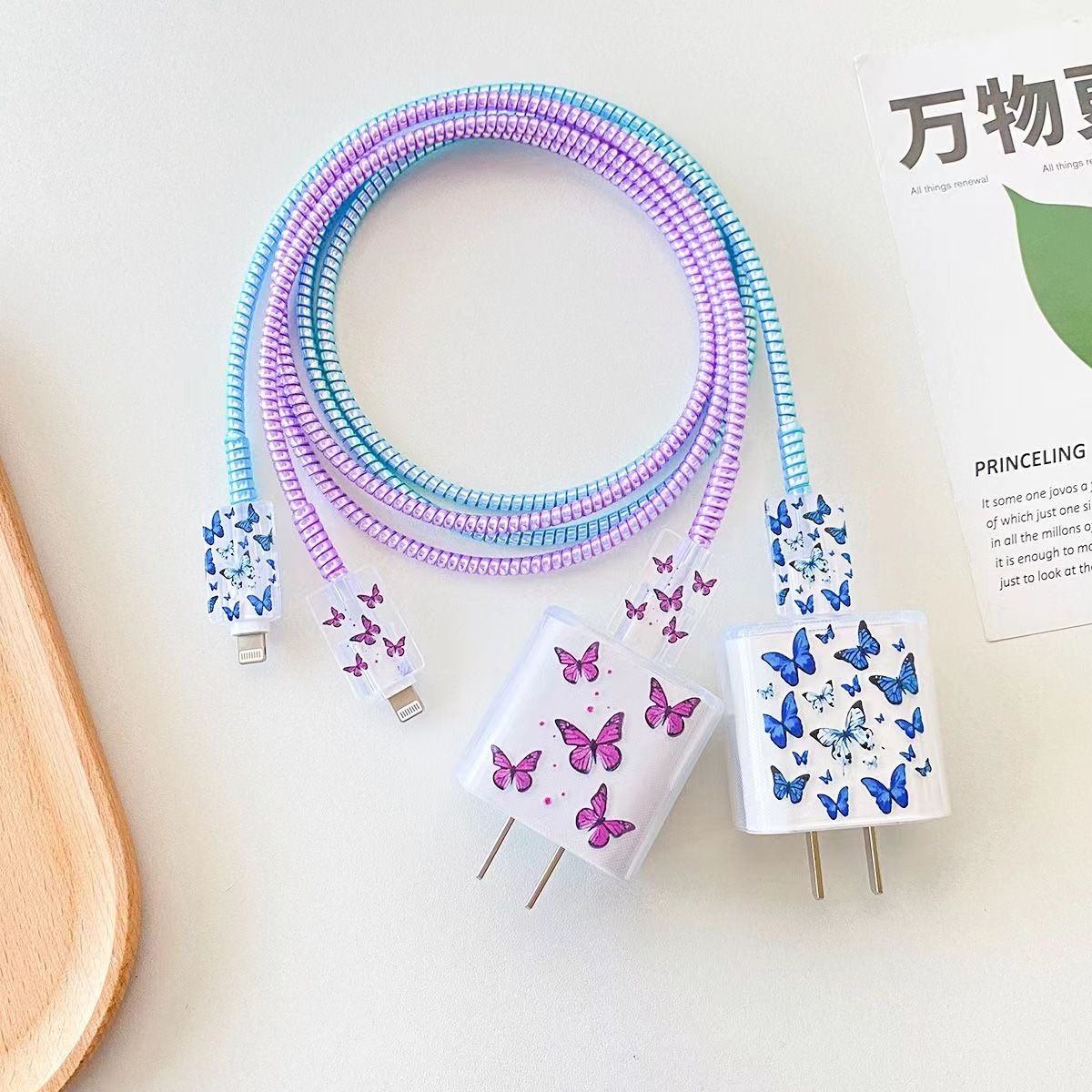 Чехол для зарядного устройства в виде мультяшной бабочки для Apple 16, защита кабеля 20W от повреждений