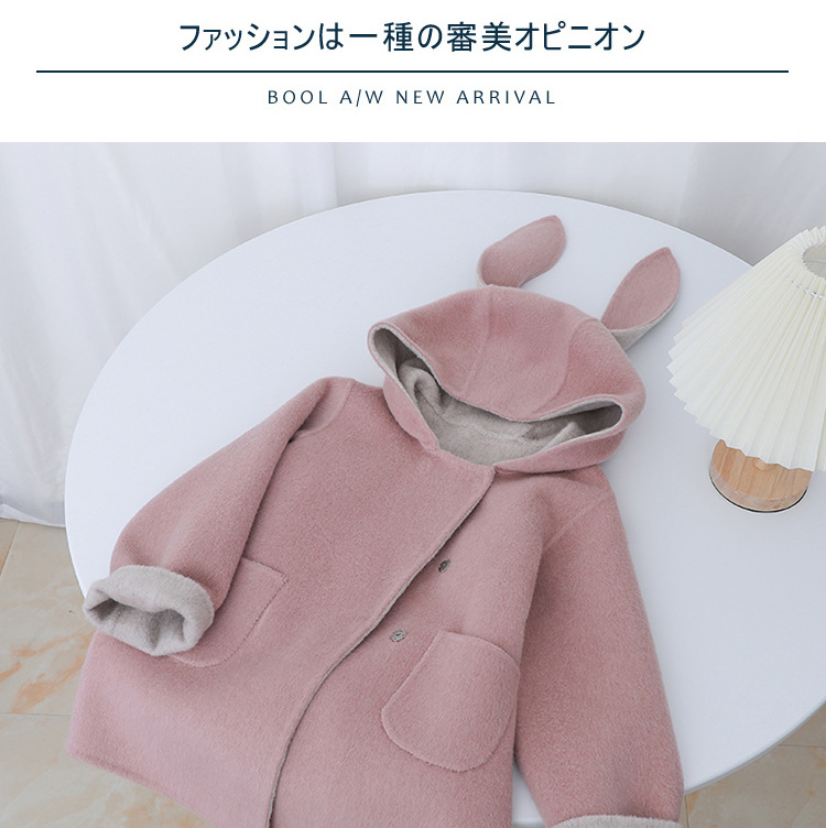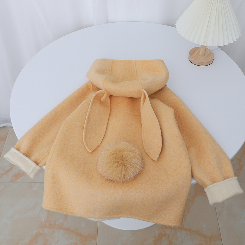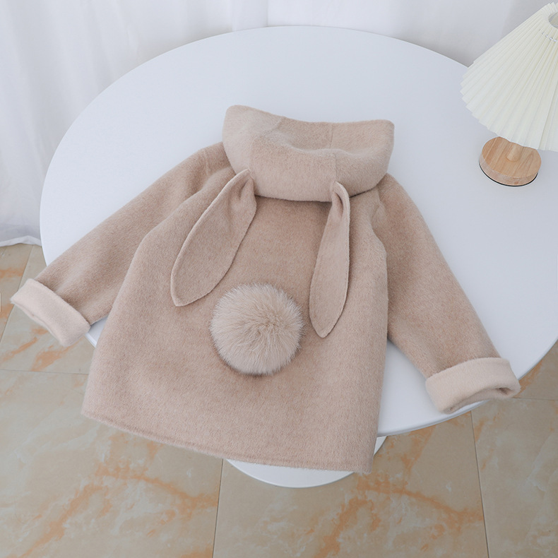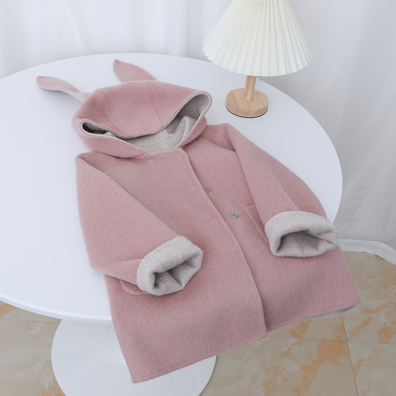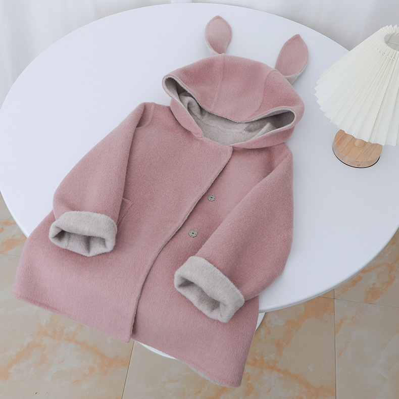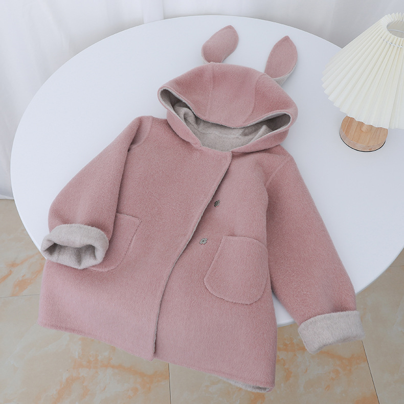 Детское двустороннее шершащее пальто 2025 года, розовое, с ушками кролика, короткое с хвостом