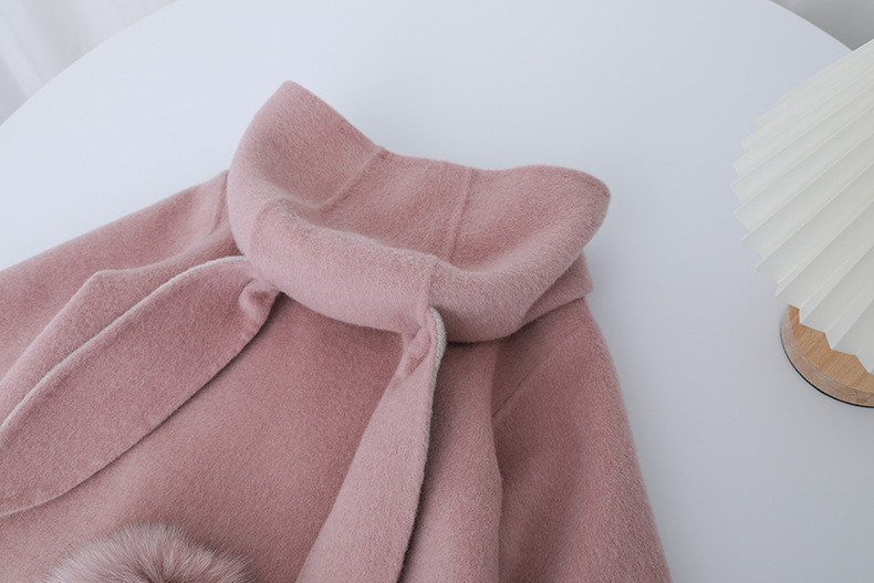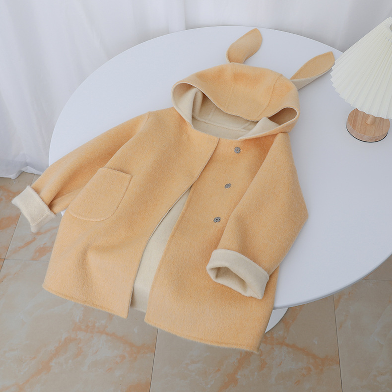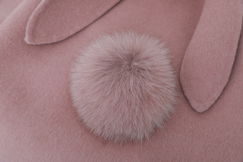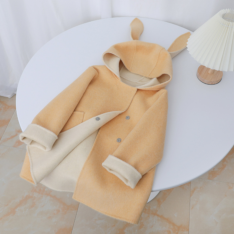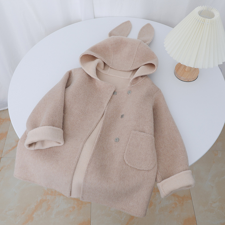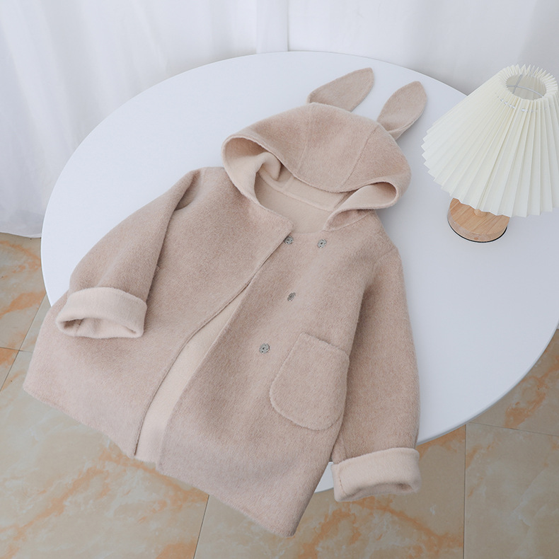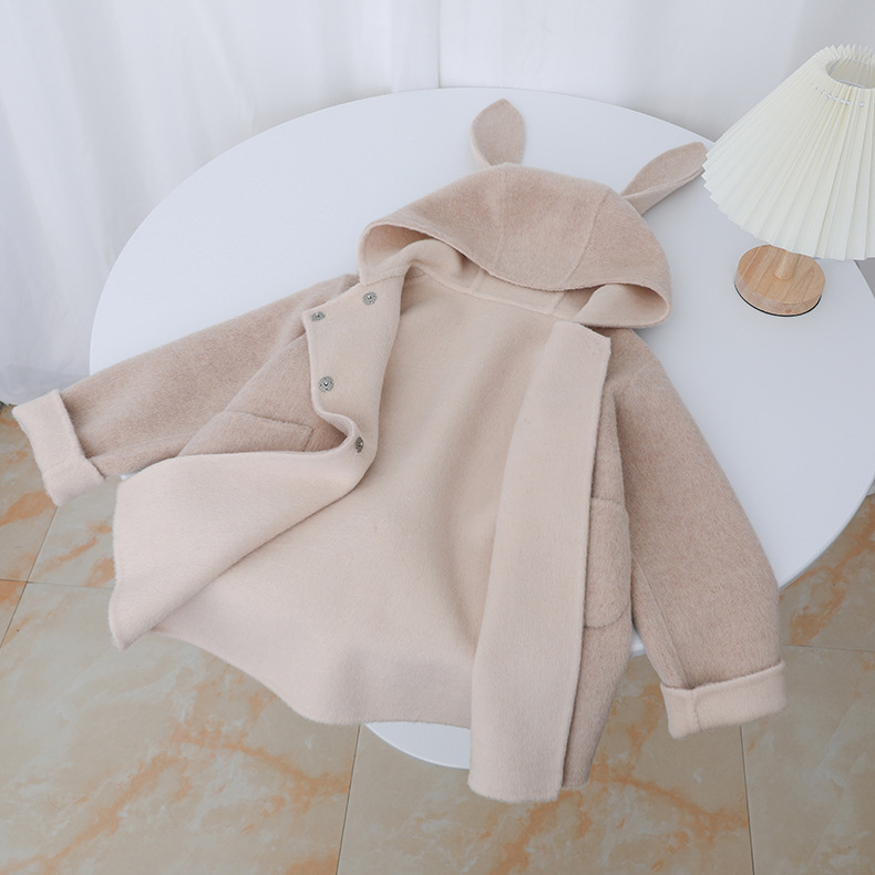 Детское двустороннее шершащее пальто 2025 года, розовое, с ушками кролика, короткое с хвостом