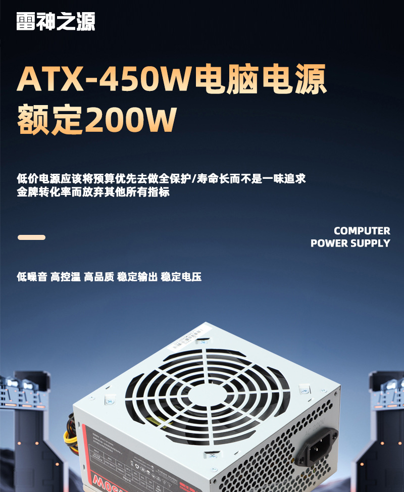 Новый блок питания Raytheon Source ATX-450W Рейтинг 200W Тихий офисный настольный ПК Блок питания для корпуса