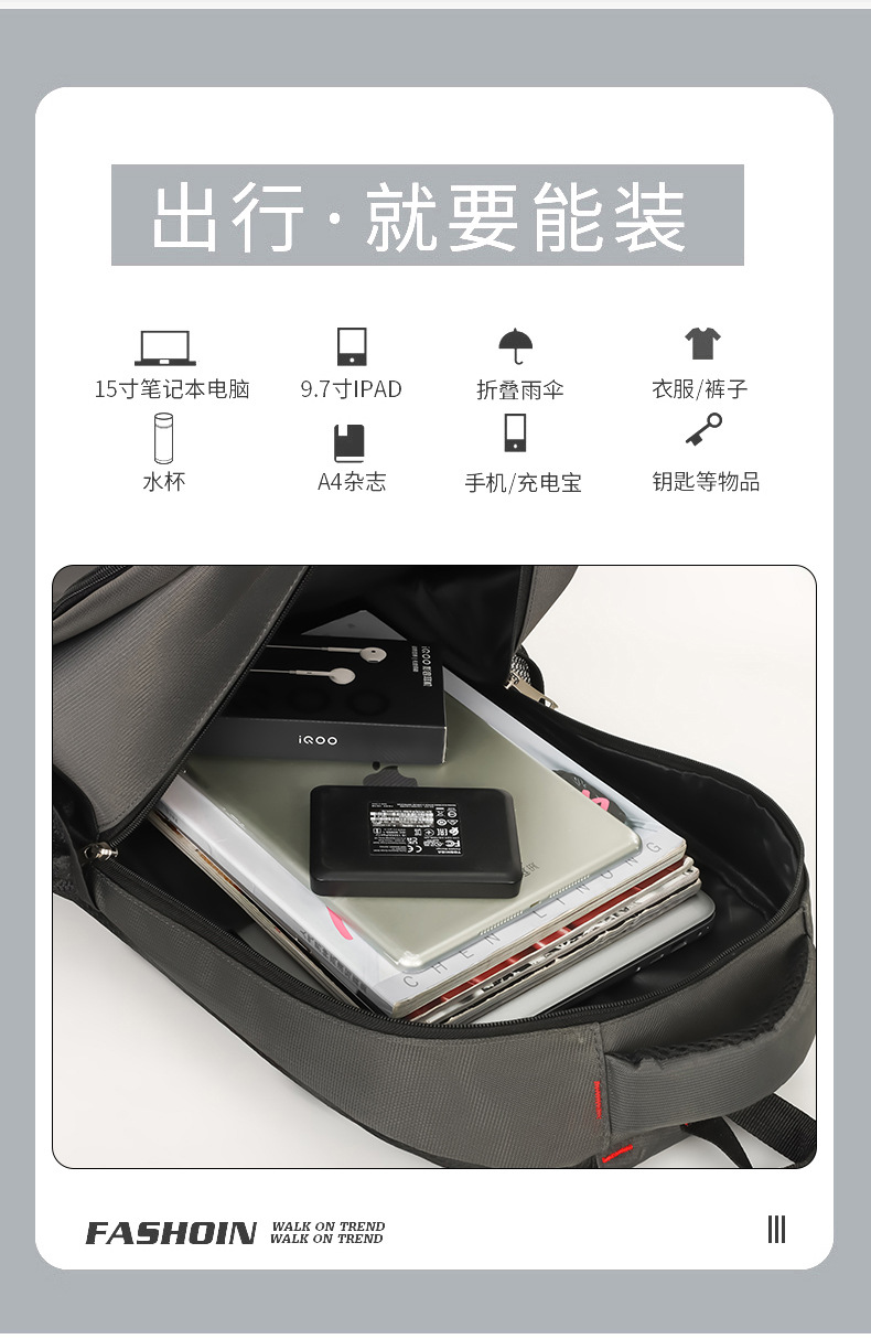 Рюкзак мужской большой ёмкости бизнес-компьютерная сумка школьная сумка мужская портативная для поездок водоотталкивающая