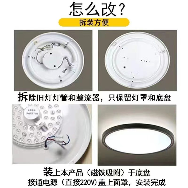 Ядро светодиодной потолочной лампы, замена, модуль для спальни, круглая магнитная энергосберегающая лампа