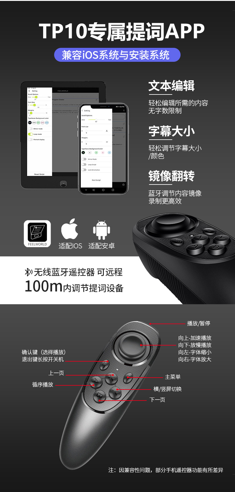 Телесуфлер Fuweide TP10 для мобильного телефона, SLR камеры, портативный, малый, для уличной видеосъемки