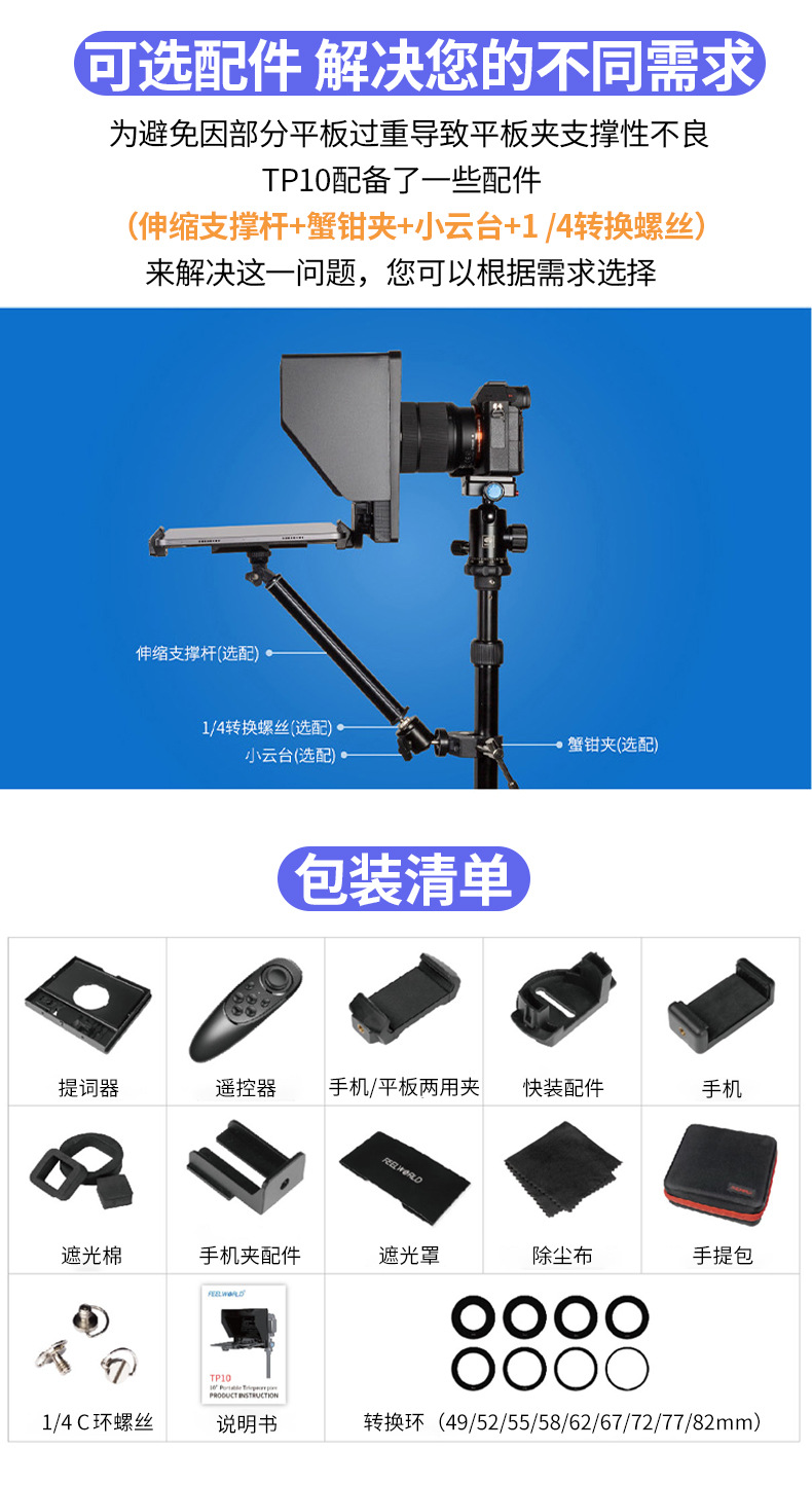 Список упаковки Mobile phone/tablet dual-use clip quick assembly accessories mobile phone clip mobile phone clip accessories blackout cotton lens adapter ring remote control 1/4c ring screw sunshade