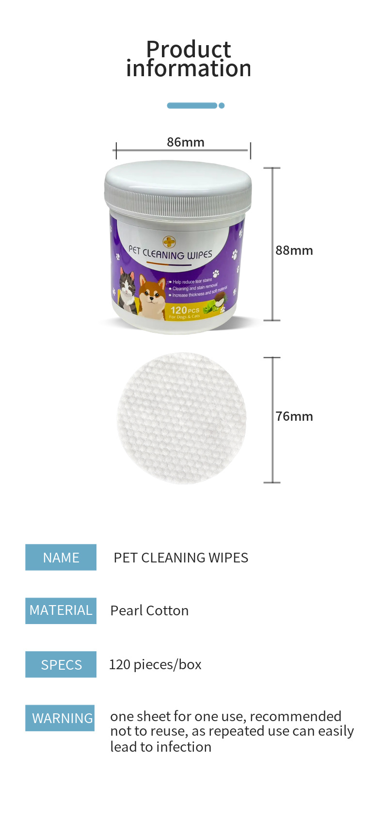 Салфетки для глаз домашних животных 120 шт для удаления слезных пятен и чистки ушей универсальные оптом