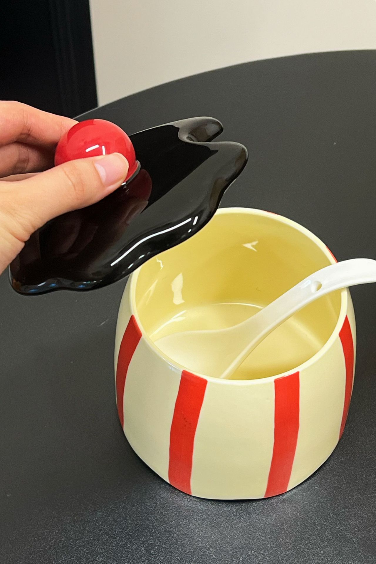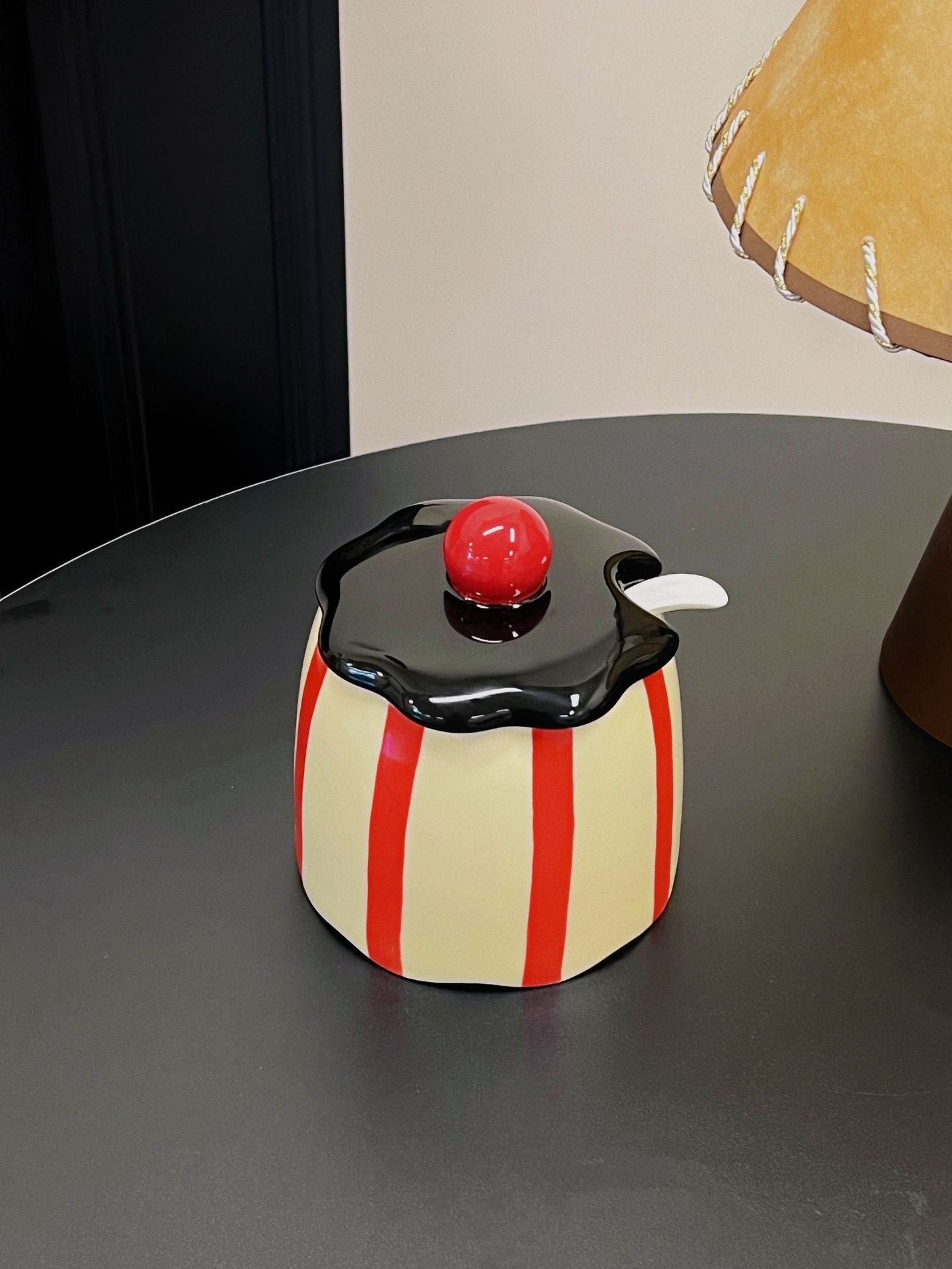 Керамическая банка для жира с ложкой Полосатый горшок для масла Домашняя керамическая банка с высокой температурной устойчивостью
