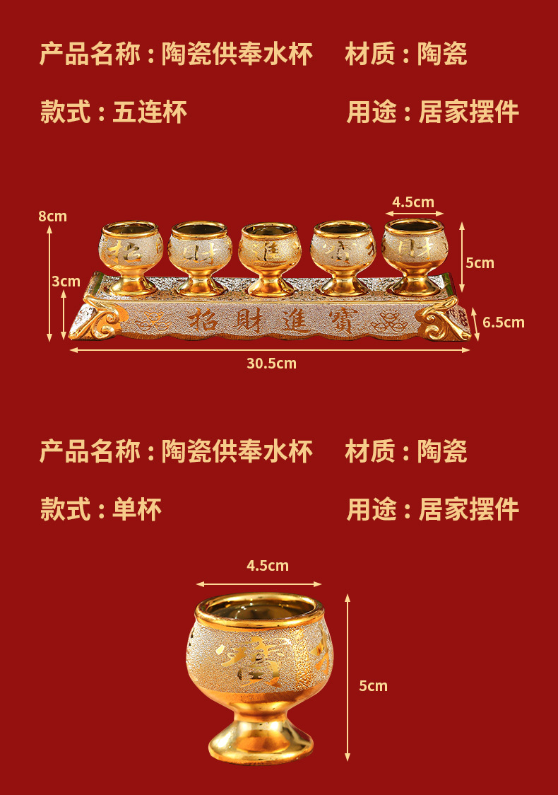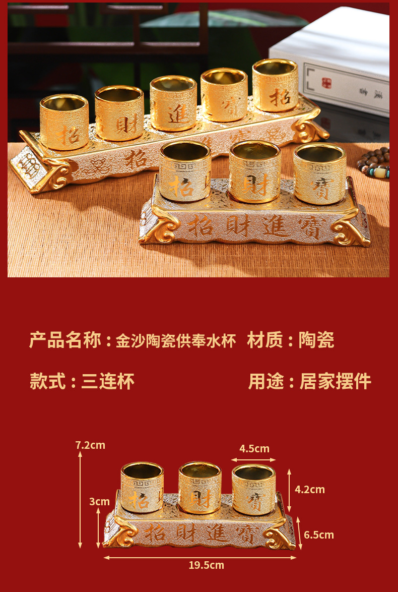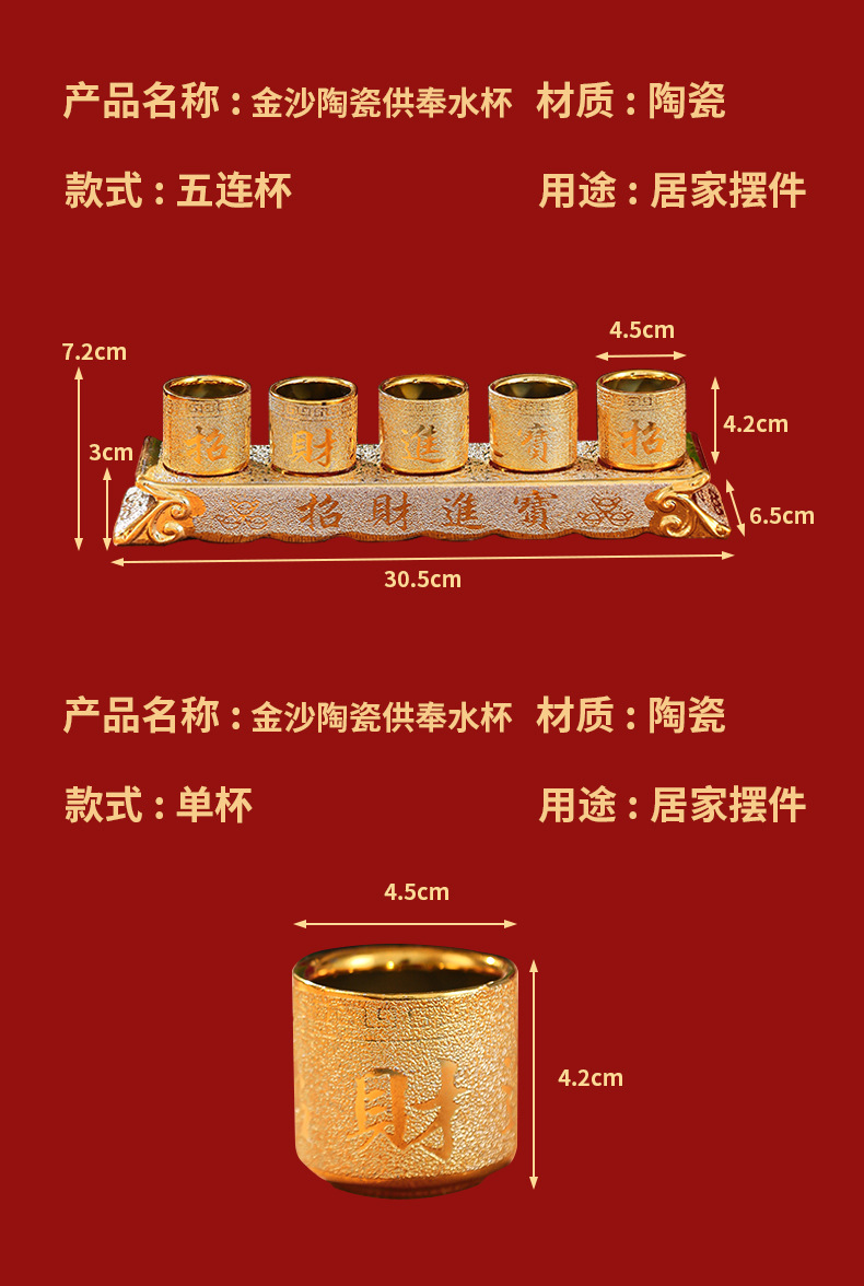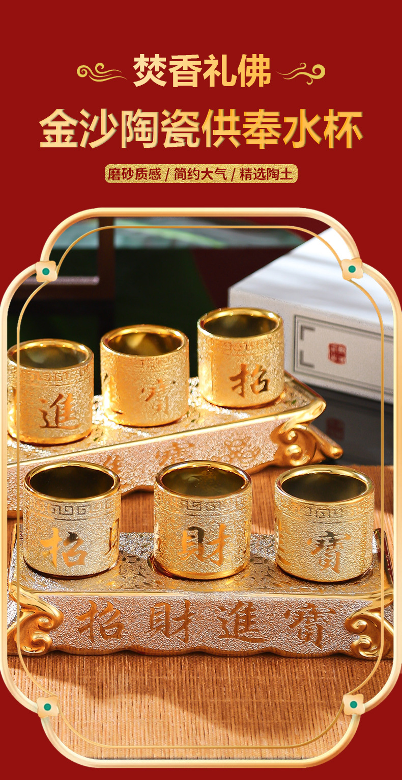 Оптовая керамическая золотая песчаная чаша для воды, домашняя чаша для вина Будды, украшения для буддийского зала, поклонение Гуаньинь, богу богатства