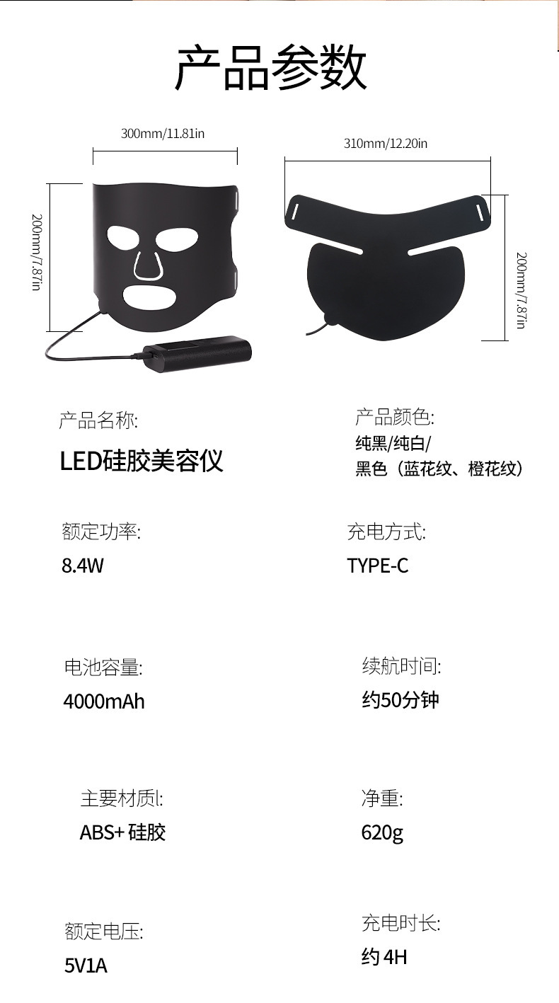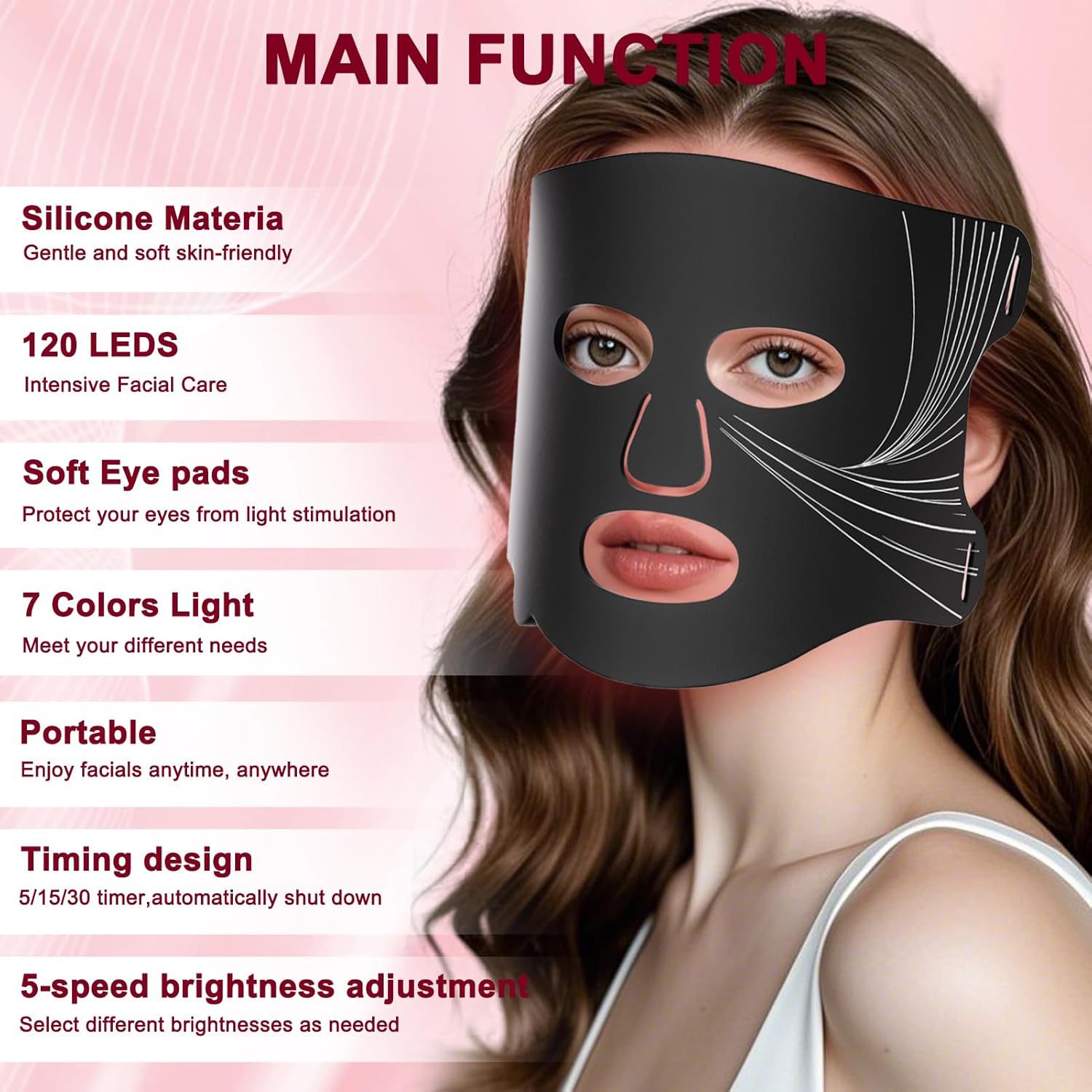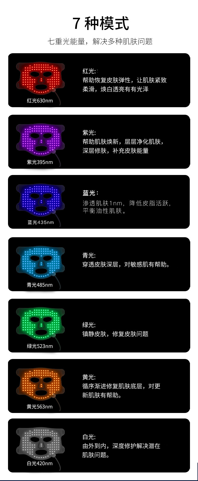Силиконовая LED маска для лица, устройство для омоложения с семью цветами
