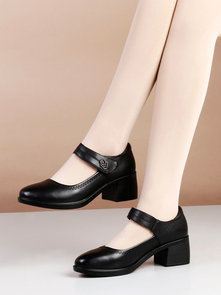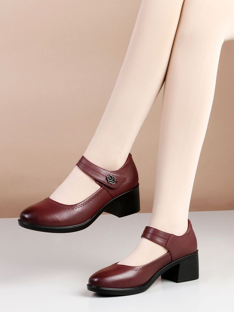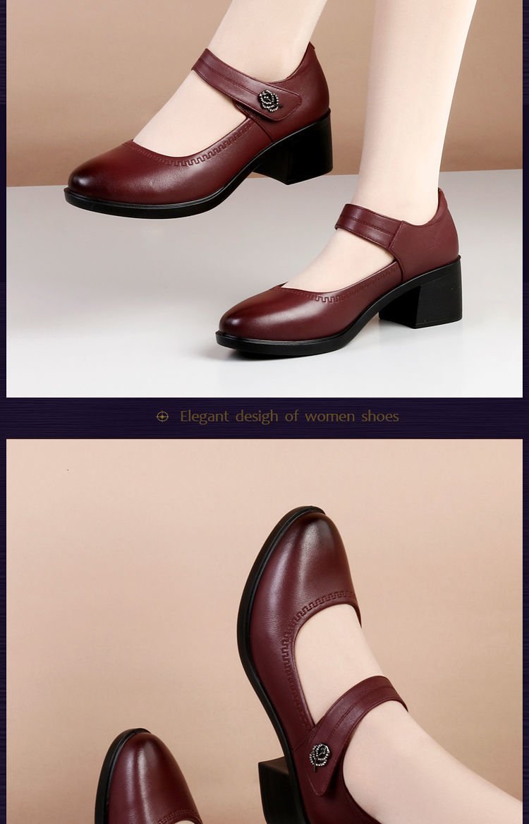 Экспортные мягкие кожаные плоские туфли для женщин, новые 2025 года, с средним каблуком, туфли для мам, толстые плоские туфли, круглые носки, корейский стиль