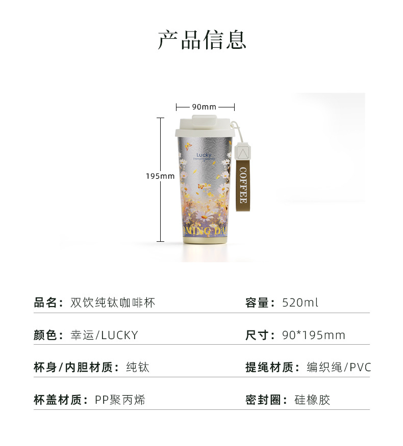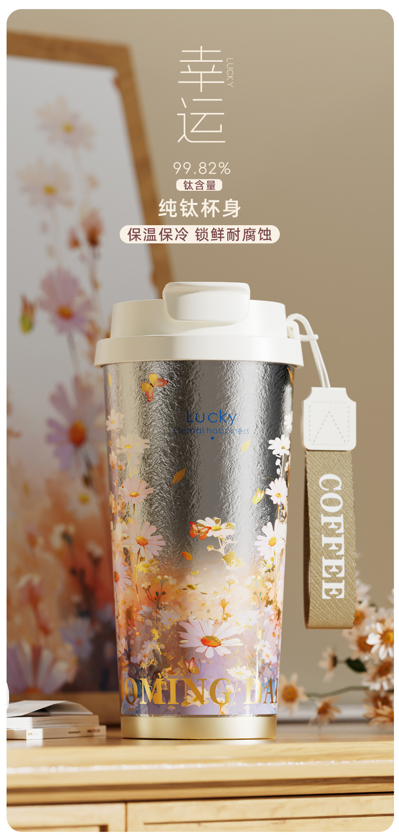 Новая титановая чашка, чистый титан, термос для мужчин, высококачественная чашка для чая, для девушек, с высоким значением, Ван Гог, изоляция, кофейная чашка