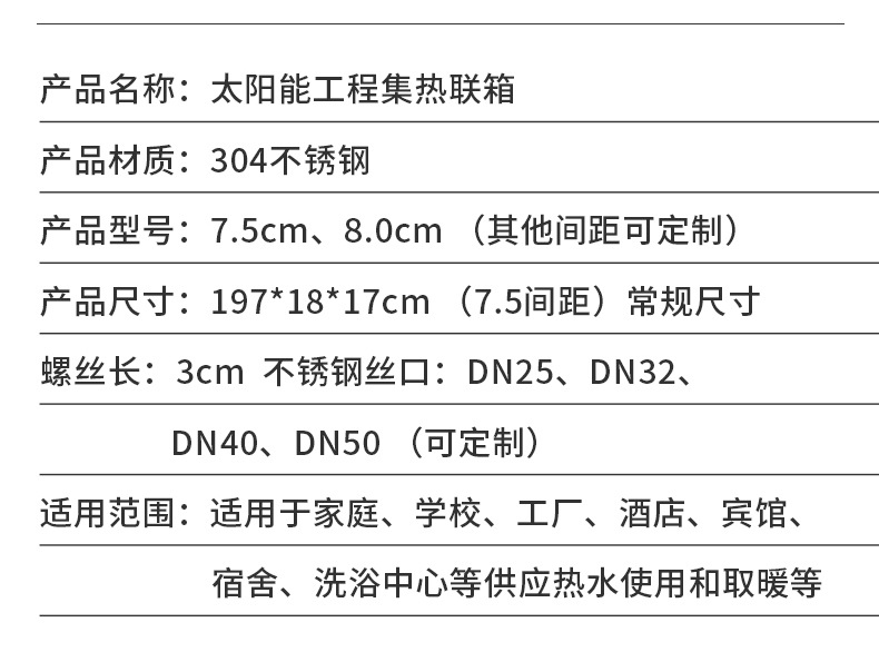 📦 | 8cm insulated stainless steel solar heating engineering manifold (without tail support) | ¥360.0 / ≈ 4 342 ₽ | 99997 | 5977445822532 | |